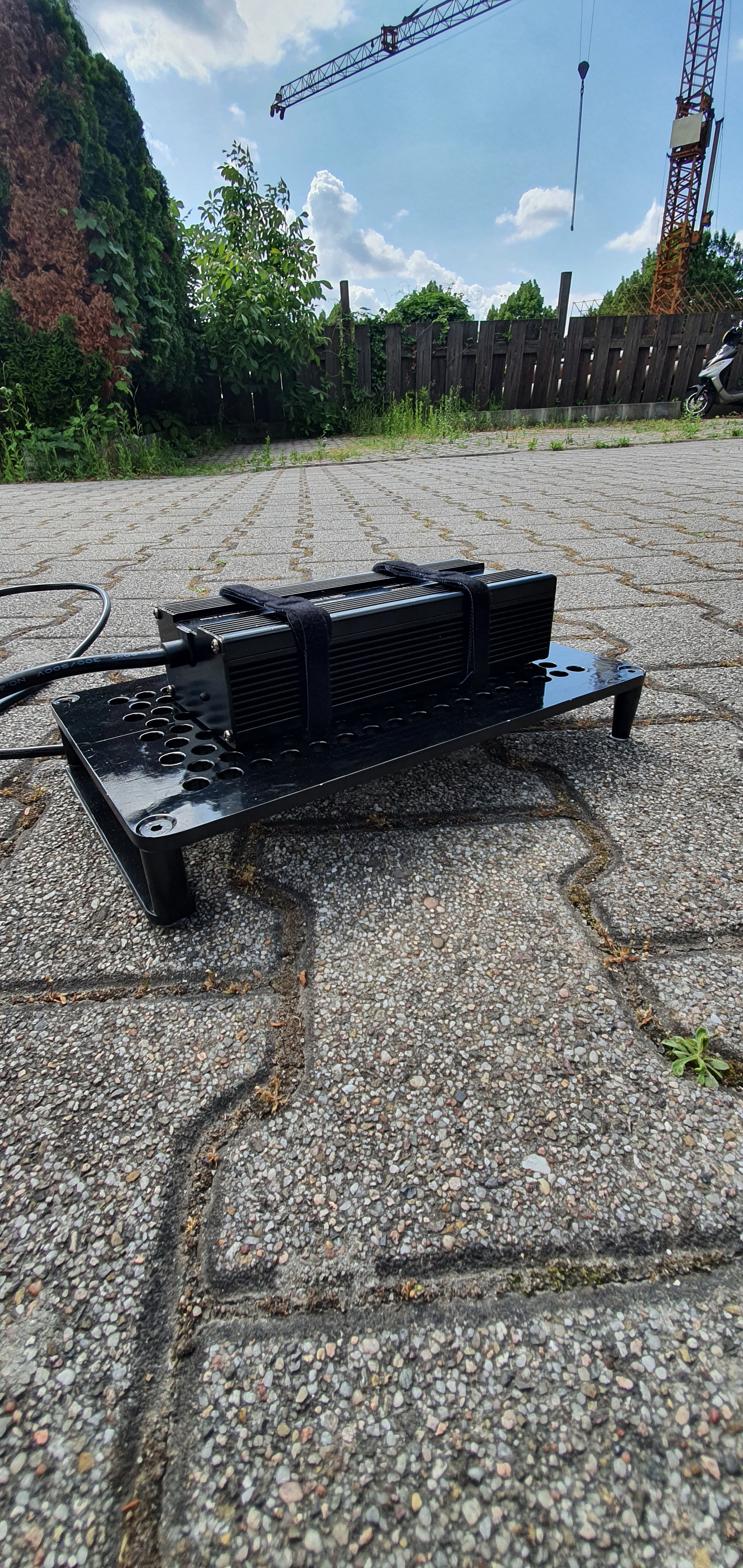 So, fertig. Aufbauhöhe incl. Aluplatte und Winkel zur Wärmeableitung sowie ausreichend Platz für die Luftzirkulation 8cm.