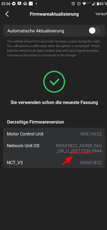 Bei genauem Lesen des Vertragsverlängerungsangebots gibt es das Problem gar nicht, dass ein Online-Update nicht möglich sein soll. Denn man kann ja 30 Tage kostenlos die NIU-App erneut nutzen.kabee hat geschrieben: ↑Fr 9. Mai 2025, 18:36Dazu müsste die SIM halt online sein...guewer hat geschrieben: ↑Fr 9. Mai 2025, 00:19Habe gestern durch Stöbern im Forum festgestellt, dass neue ECU-Versionen auch über die NIU-App "over the air" installierbar sind.
