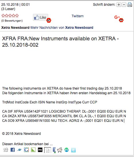 „NIU Tech ADR-A“ kann ab 25.10.2018 an der XETRA-Börse in Frankfurt in Euro gehandelt werden. Die Wertpapierkennnummer lautet: A2N7LN (ISIN: US65481N1000)
