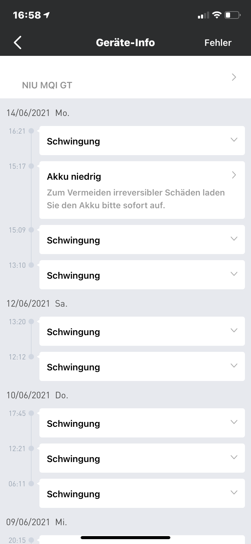 Die App hat eine Fehlermeldung gespeichert und die Akkuanzeige des Akkus ist auch merkwürdig.