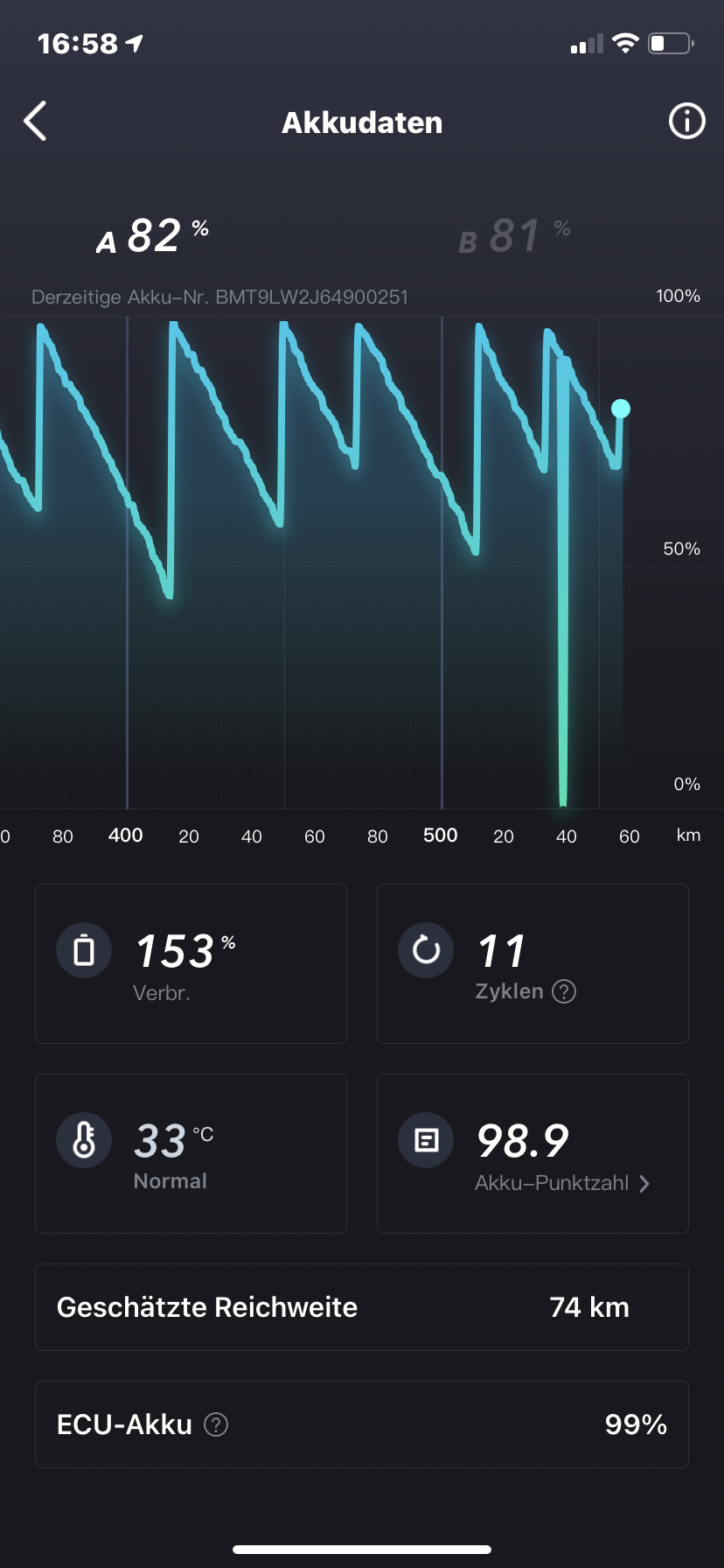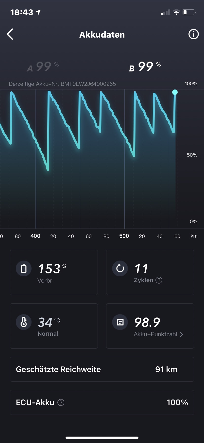 Denke auch, das es noch ein paar Ladezyklen/km braucht um etwas genauer zu werden.
