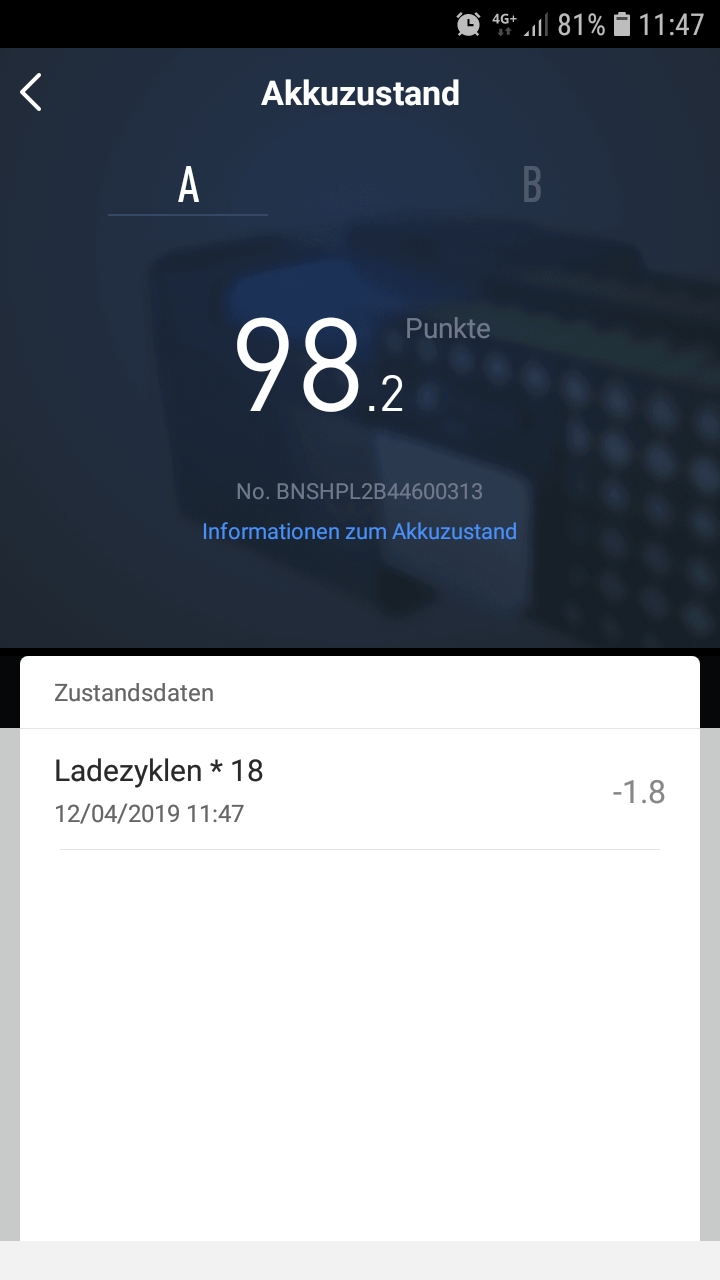 - „A“ bezieht sich auf Akku A (unter dem Durchstieg), „B“ bezieht sich auf Akku B (unter der Sitzbank)