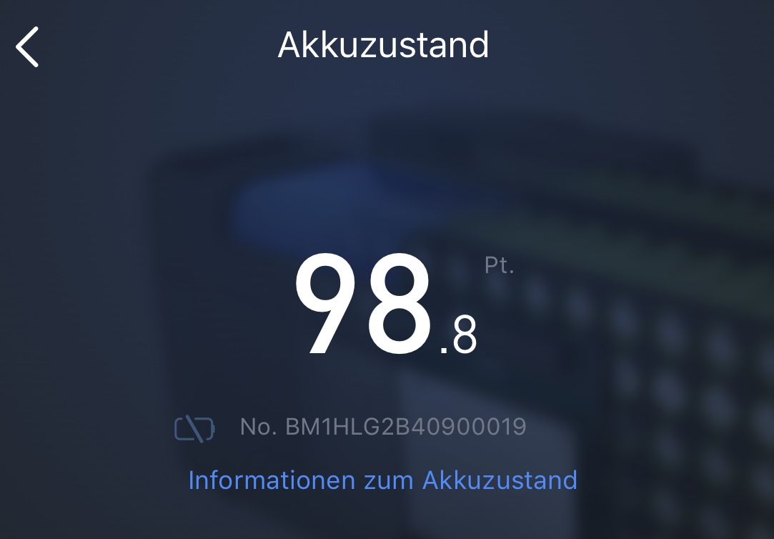 2030 km Akkuzustand 98.1 (19Z)/98.0 (20Z) (warum auch immer die differieren)