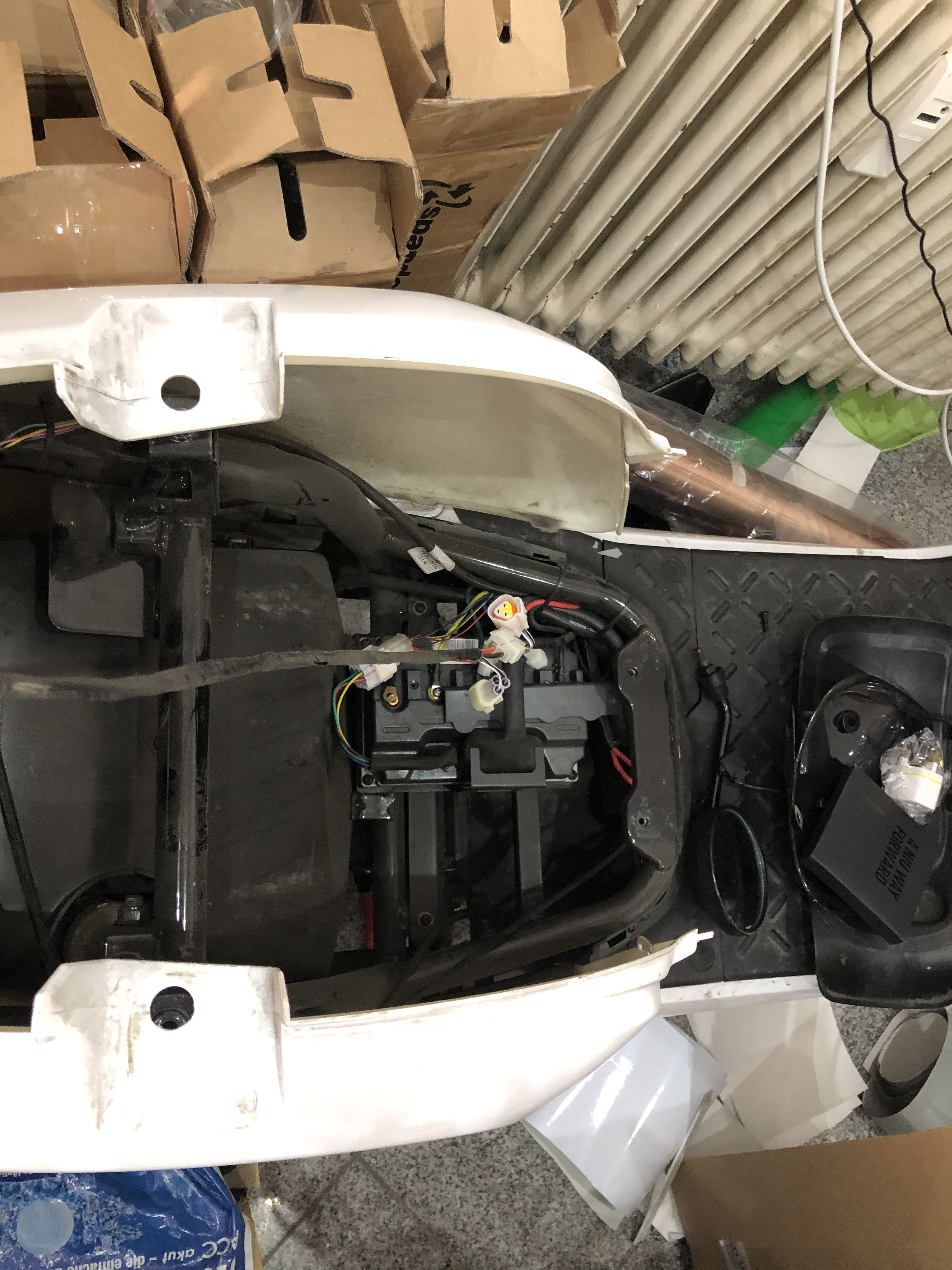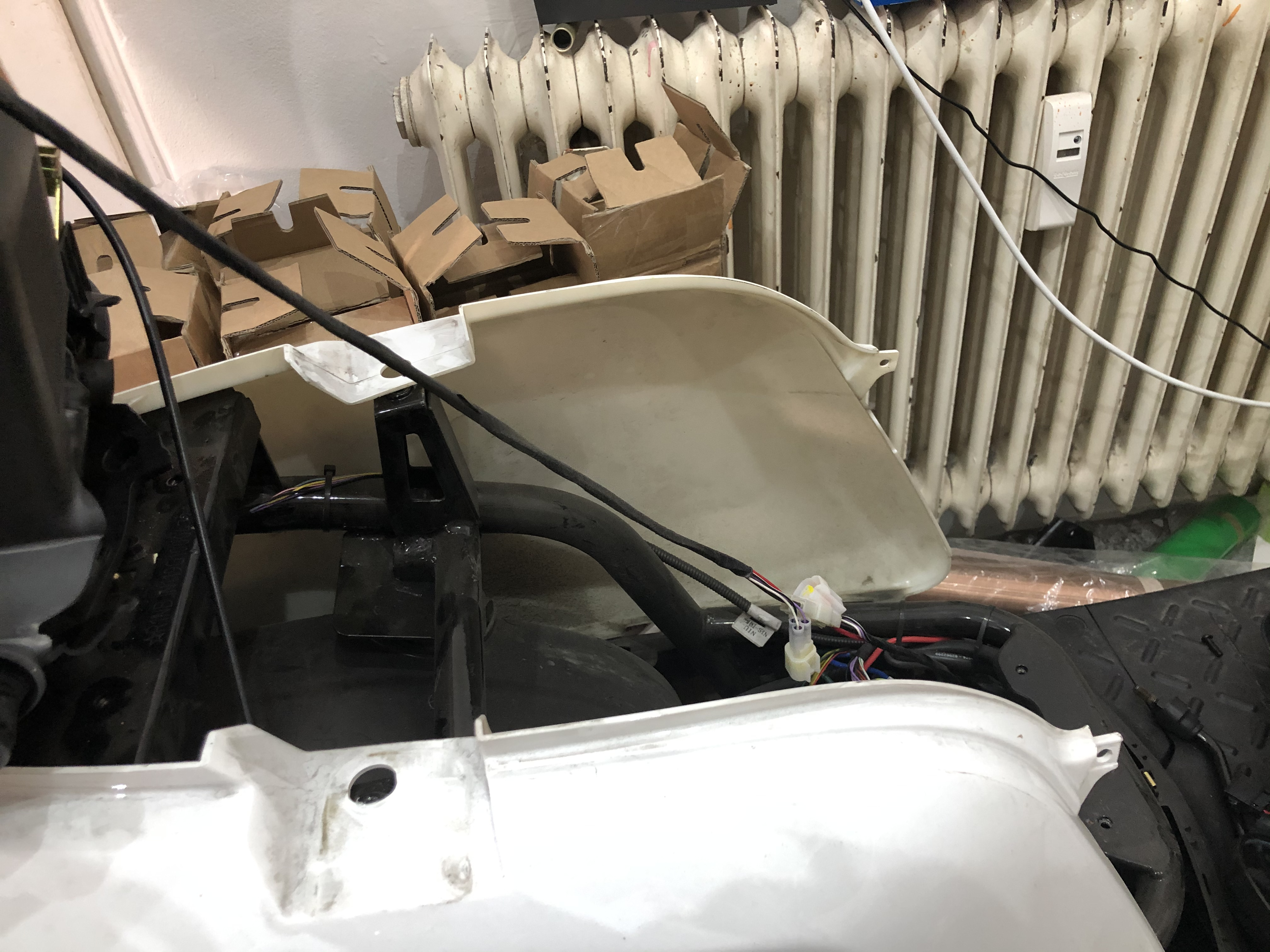 Hatte gestern Glück und der Händler (Lucas) in Nürnberg hat für mich mal kurz einen Unfaller geöffnet. Er hat wohl auch schon mal zwei Lader (der kleine 4A) links und rechts neben den unteren Akku verbaut (innerhalb der Verkleidung!?), in Reihe geschaltet bzw. verlötet und damit mit 8A geladen. Das wäre mir persönlich zu „heiß“, aber der große Lader würde theoretisch in die leeren Ausbuchtungen neben der Akkuschale passen. Müsste man halt fest verbauen und sich einen zweiten Lader holen. Belüftungstechnisch müsste man dann die Abluft des Gebläses nach oben führen. Noch Theorie, aber reizen würde es mich schon. Mit fest verbauter dicken 12A-Berta an die Autoladesäule fahren, das Typ 2-Kabel unter Sitz anstecken und Feuer frei...ZZR 1100 Racer hat geschrieben: ↑Do 11. Jun 2020, 17:38Vielleicht baue ich mal die obere Wanne unter dem Sitz aus und schaue nach wie es da nach unten weiter geht. Vielleicht bekommt man den Lader ja doch noch irgendwo verbaut wenn man aus dem Kuststoff was raus nimmt. Wenn man sich den Roller bauformtechnisch anschaut, müsste da eigentlich noch Platz sein.