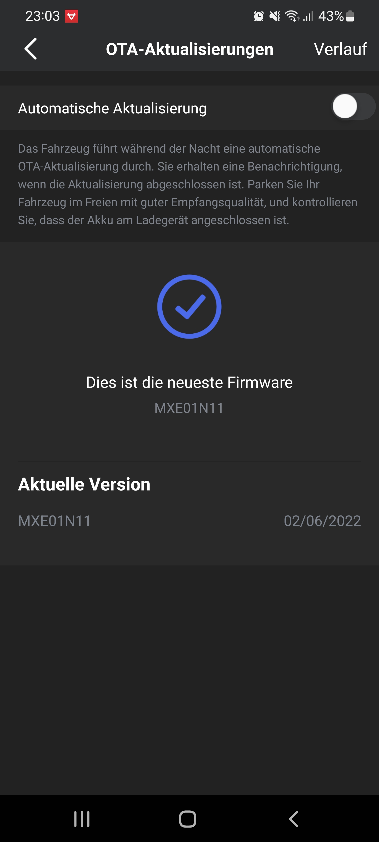 Aktuell steht im Verlauf unter OTA-Aktualisierung nichts drinnen und es wird keine Version angezeigt.