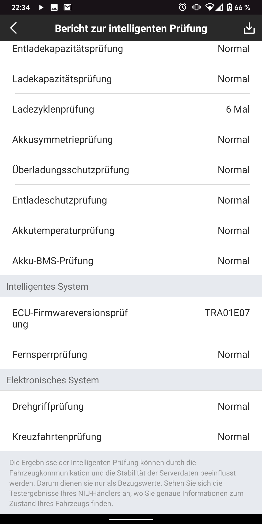 Also die intelligente Prüfung kann ich problemlos durchführen und bestehen, während die durchläuft zeigt er auch kurz einen Akkustand in diesem Durchlauf an, aber danach sagt er immer noch Akku leer