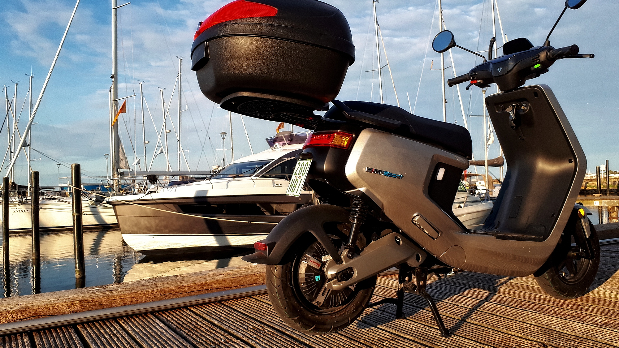 Ein NIU M+ am Yachthafen in Heiligenhafen. Ostsee.