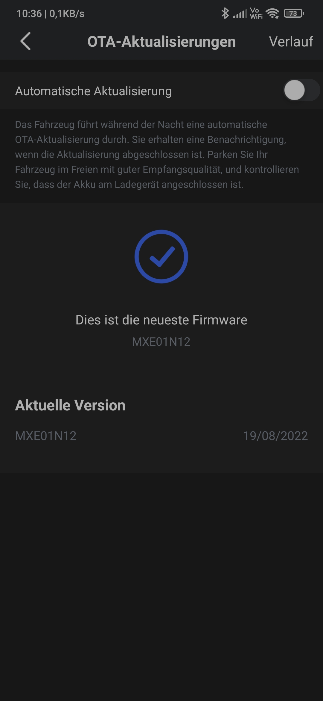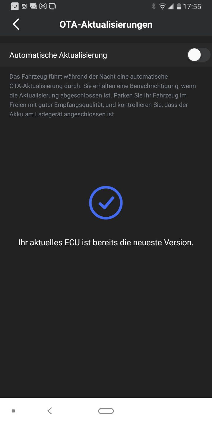 … so, ich glaube, jetzt ist bewiesen, dass NIU ohne zu fragen Updates einspielt: Ich habe automatische Aktualisierung aus und trotzdem Zeit mein Display heute die Temperatur an meinem Standort an. Das kann nur bedeuten, dass ein Firmware Update gemacht wurde, obwohl ich dies an keiner Stelle genehmigt habe. Anders kann ich mir das sonst nicht erklären! Vielleicht sollten wir hier mal die Firmware Versionen notieren, denn als ich das letzte Mal meine Firmware auslesen konnte, hatte ich da weder 10, 11 oder 12 am Ende stehen sondern meines Erachtens nach eine 30. Auch bemerke ich, dass manche hier ihre Firmware Version ablesen können und manche erkennen das nicht. Vielleicht gibt es wirklich total unterschiedliche Firmware-Versionen?