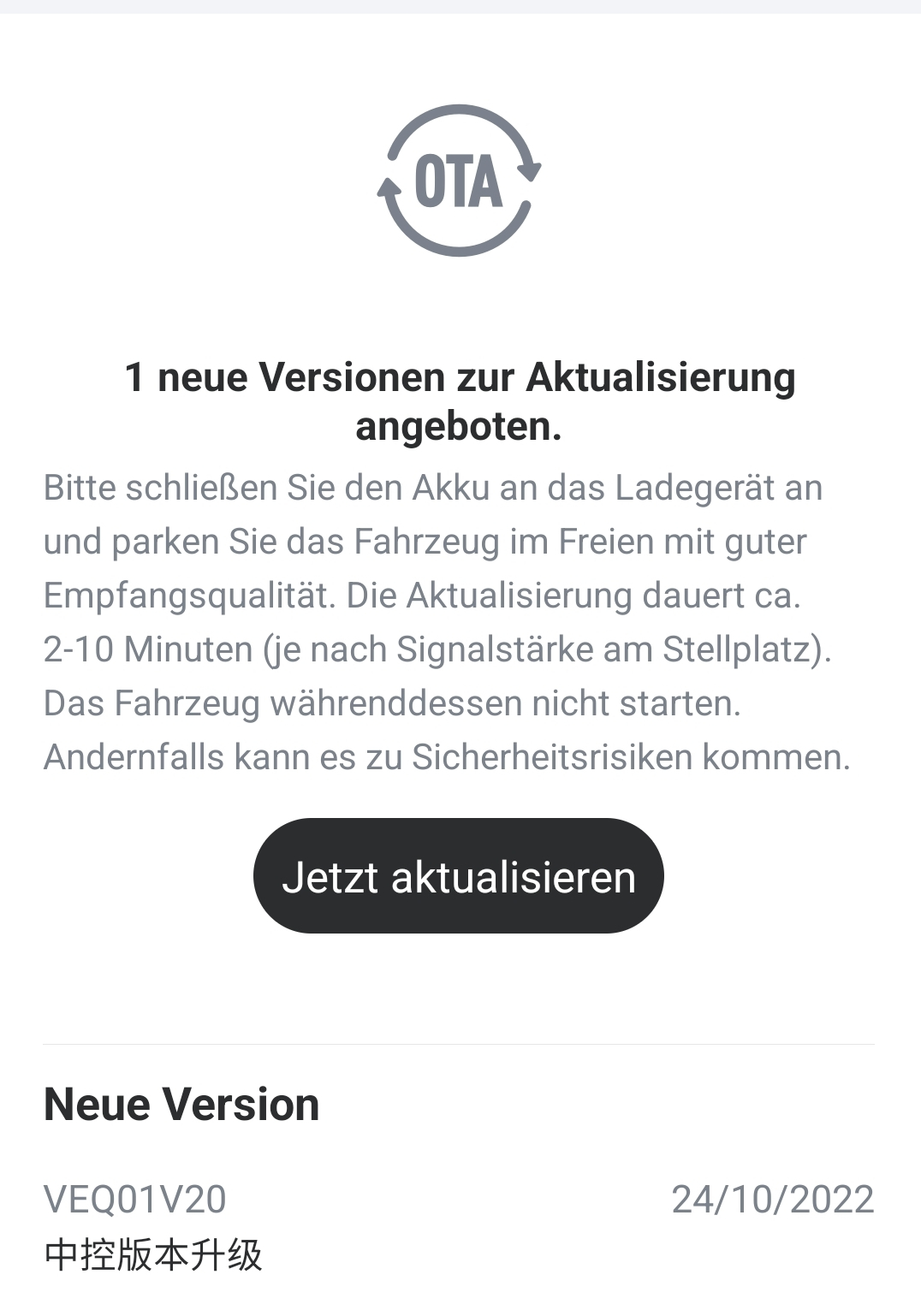 Ich bezweifel, dass außer der ECU die andere Firmware per OTA upgedatet werden kann. Das wäre Premiere bei NIU, und z.B. die Tatsache, dass der Motor mit "Spezialwerkzeug" upgedatet werden muss und das BMS wohl vom Händler per Diagnosegerät, zeigt, dass die Onlineupdatemöglichkeiten recht begrenzt sind.