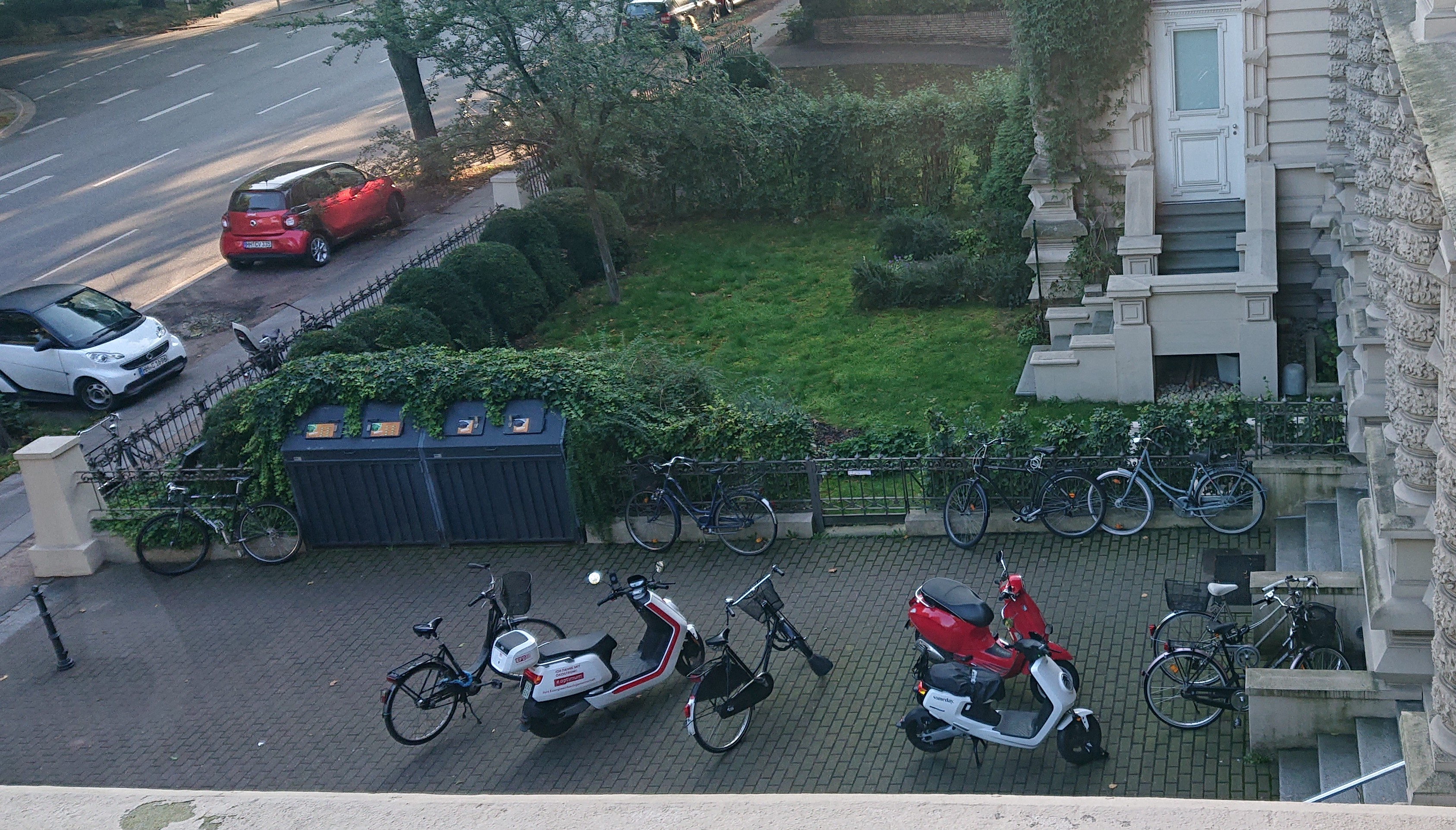 Heute morgen in der Hallerstraße. Fahrräder, NIUs, Vespa und Smarts. Zeiten ändern sich. 😊