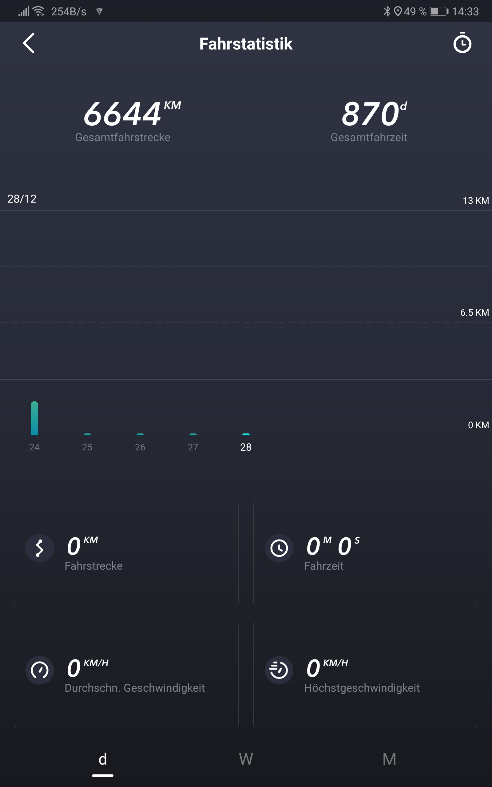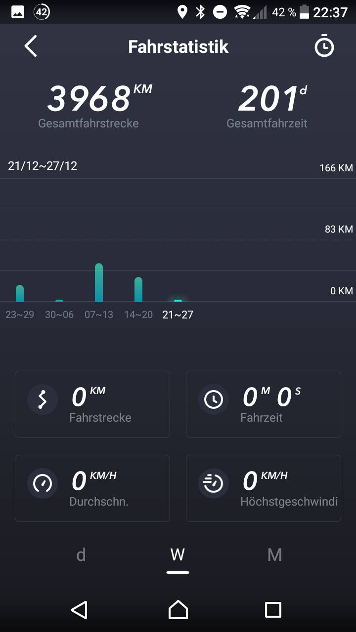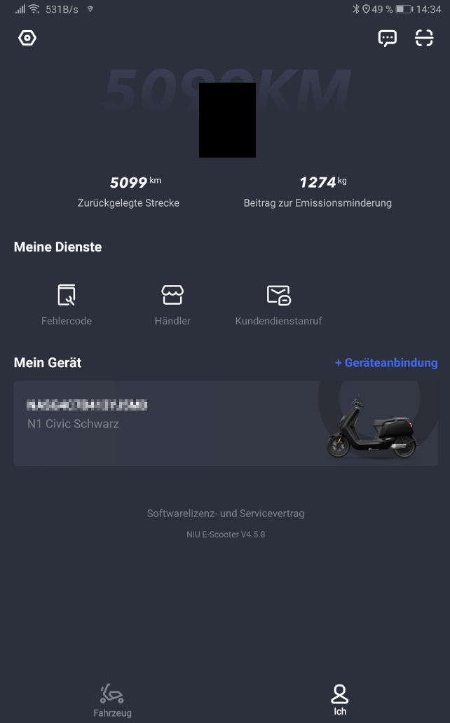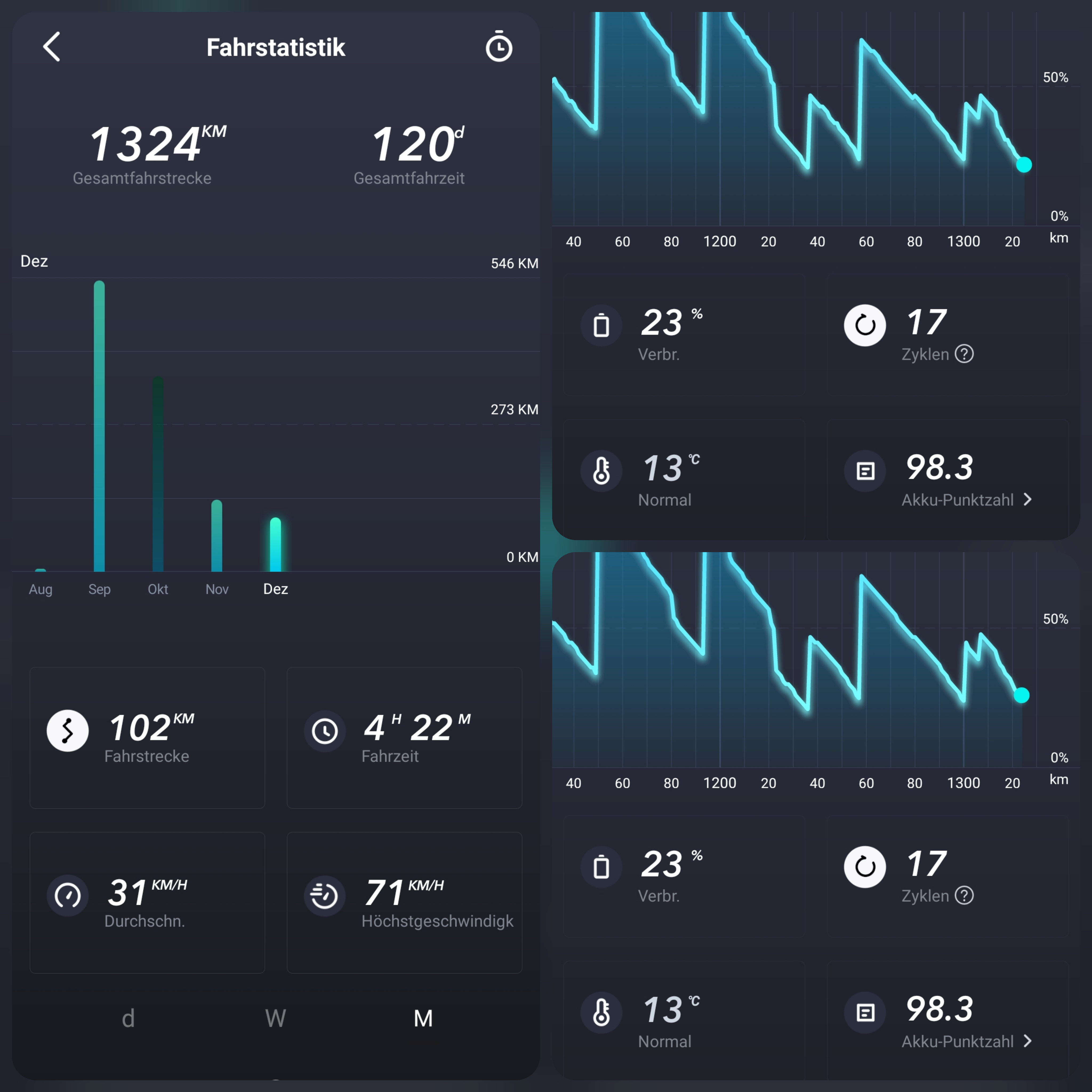 Wie Ihr im 3. Snapshot sehen könnt, steht auf der Ich-Seite "5099 km" , während unter "Fahrstatistik" "6644 km" steht.