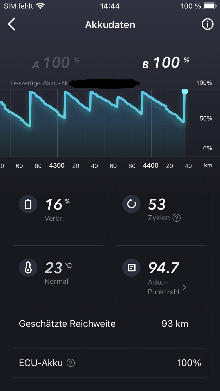 Das beiden Akkus wurde bis auf 4-5 Mal ausschließlich im Fahrzeug gemeinsam geladen und doch zeigen sie unterschiedliche Zyklenanzahl an.