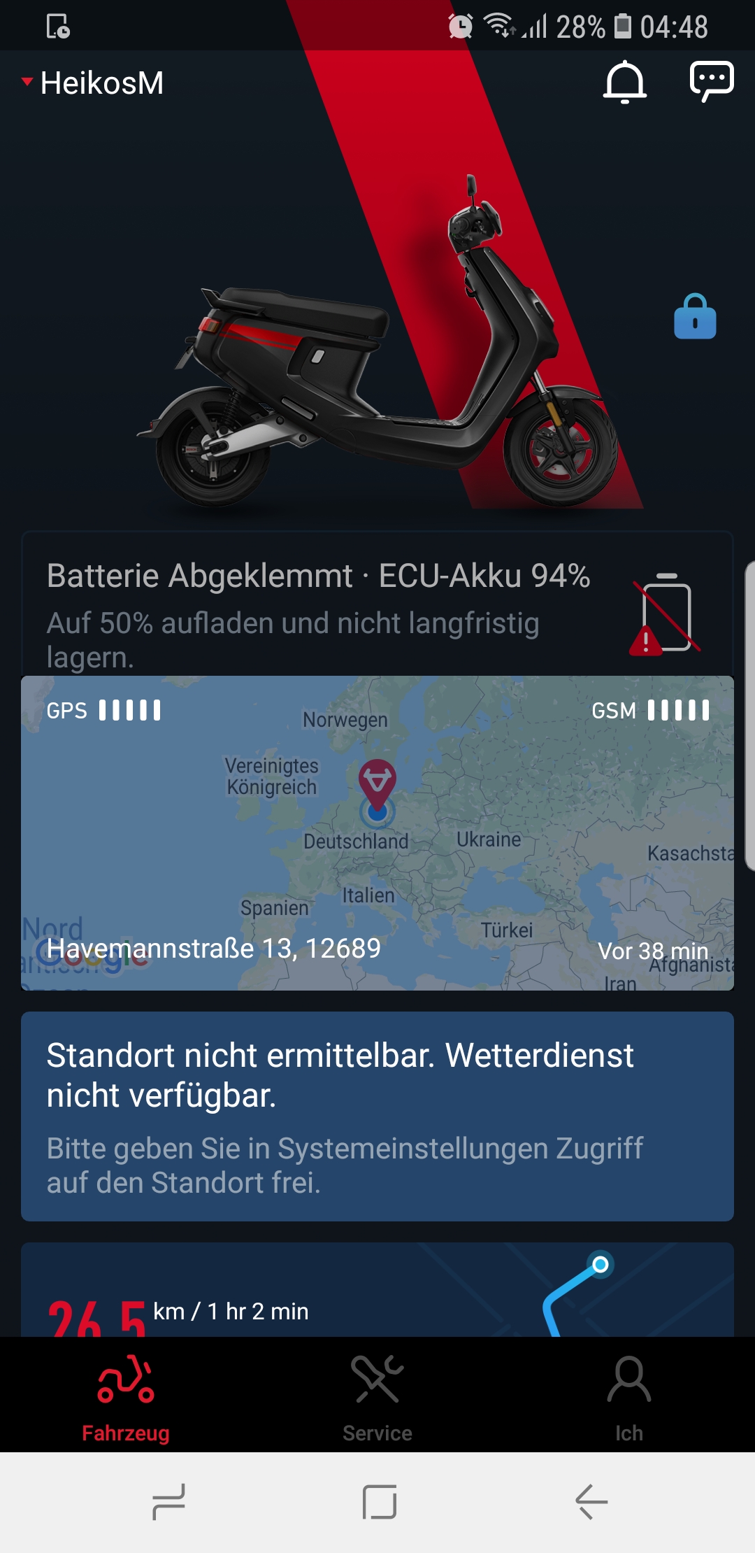 Ich habe alle Zugriffe freigegeben und direkt darüber kann ich meinen Stsndort und den des Rollers auf der Karte ansehen, wenn ich draufklicke. Gsm und gps Signale voller Ausschlag.