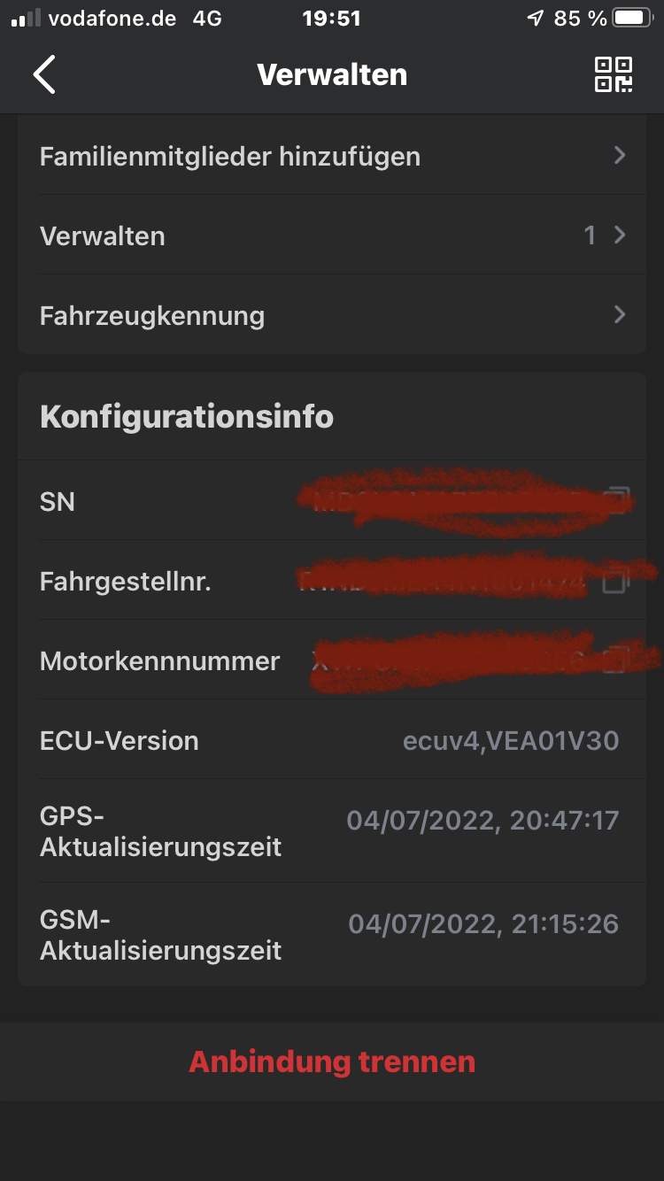 Habe ihn gestern nach 5 Wochen mit dem angeblichen Update abgeholt.Zu meiner Verwunderung habe ich 2 neue Schlüssel bekommen und einen QR Code um den Roller in der App anzulernen.Konnte mir vor Ort leider keiner was dazu sagen da der verantwortliche Mitarbeiter krank ist und mir der Roller nur übergeben wurde.Soweit so gut. Das erklär zumindest mal warum nach dem Update mein Roller in meiner App auch offline ist.