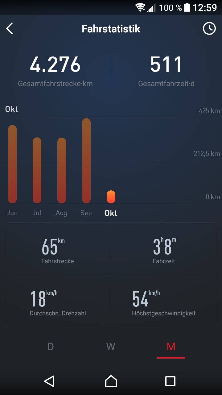 Der Mittelwert gilt maximal jeweils nur für den letzten Monat, daher auch die Überzeugung, das er wenig Aussagekräftig ist (vor allem, da es scheinbar keinen Zusammenhang zu den gefahrenen Kilometer gibt). Das bestärkt - scheinbar nicht nur mich - lieber die Akkudaten (Lade-)Zyklen und Punktestand der App anzugeben. Dort könnten vielleicht neue Erkenntnisse, z.B. was NIU alles bei der Punktevergabe berechnet und wie Aussagekräftig diese Angaben sind (könnte für einen Weiterverkauf, z. B. wenn man im Januar auf NGT/NPro/M+ umsteigt von Relevanz sein). Wir sind auch nicht in der Lage, die Durchschnittsgeschwindigkeit über die gesamte Fahrdauer zu ermitteln (daher der Sinneswandel hin zu Akkudaten).