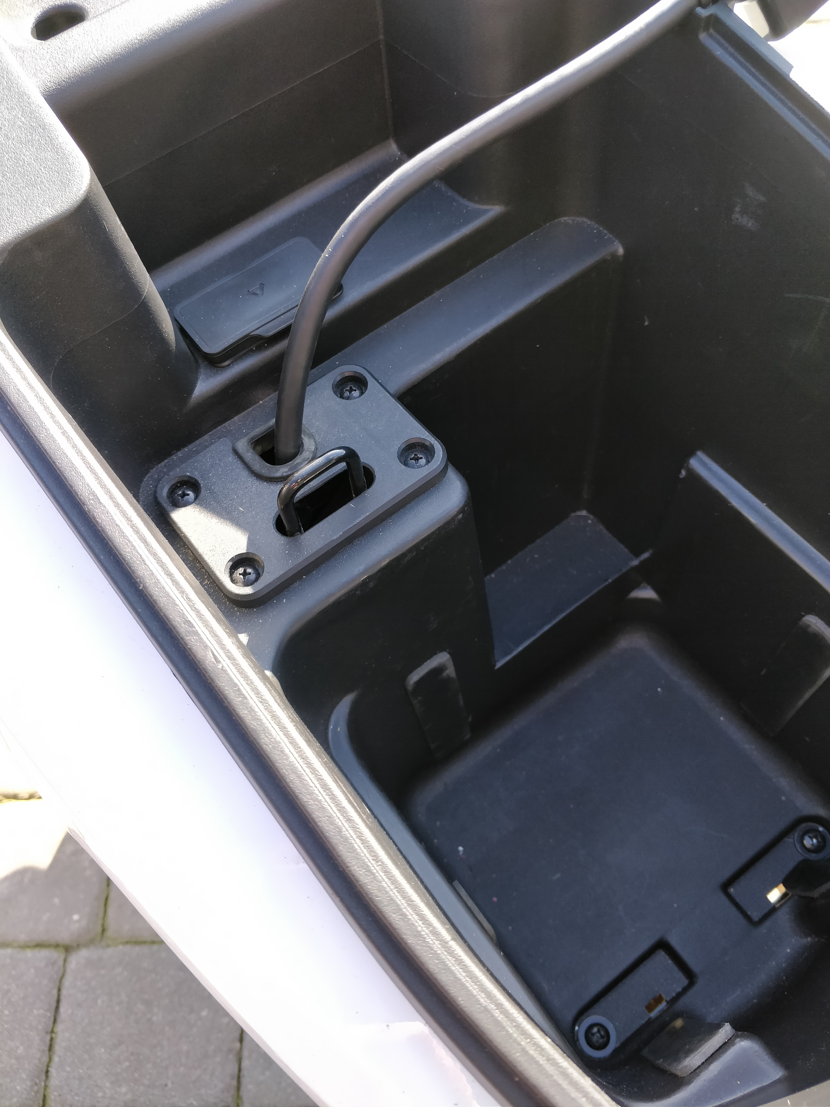 ich nutze den Bügel um dort ein langes Fahrradschloss von Abus dranzuhängen, so kann ich entweder meinen Helm an den Roller befestigen oder den Roller an einen Laternenmast fest machen.