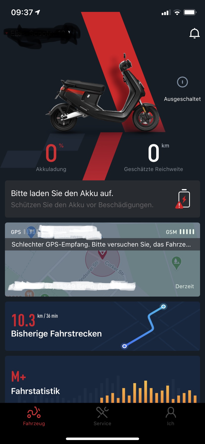 Mein M+ hat vor kurzem eine neue ECU V3 bekommen. Die Alarmmeldungen wie Schwingung, Anormale Bewegung usw... bekomme ich durch die App gemeldet. Aber mein Fahrakku springt nach einigen Stunden (ca. 2-3 Stunden) auf 0%. Hatte ich mit der alten ECU U2 ähnlich. Die BMS vom Fahrakku hat laut meines Händlers ein Update bekommen. Bei der Intelligenten Prüfung habe ich kein BMS-Fehler mehr. Die anderen NIU-App Fehler wie 1% ECU-Akku oder z.Z. keine GPS-Fahrtaufzeichnung, kann ich hier im Forum nachvollziehen. Server-Problemme von NIU. Vieleicht hat ja jemand die Problemme auch.