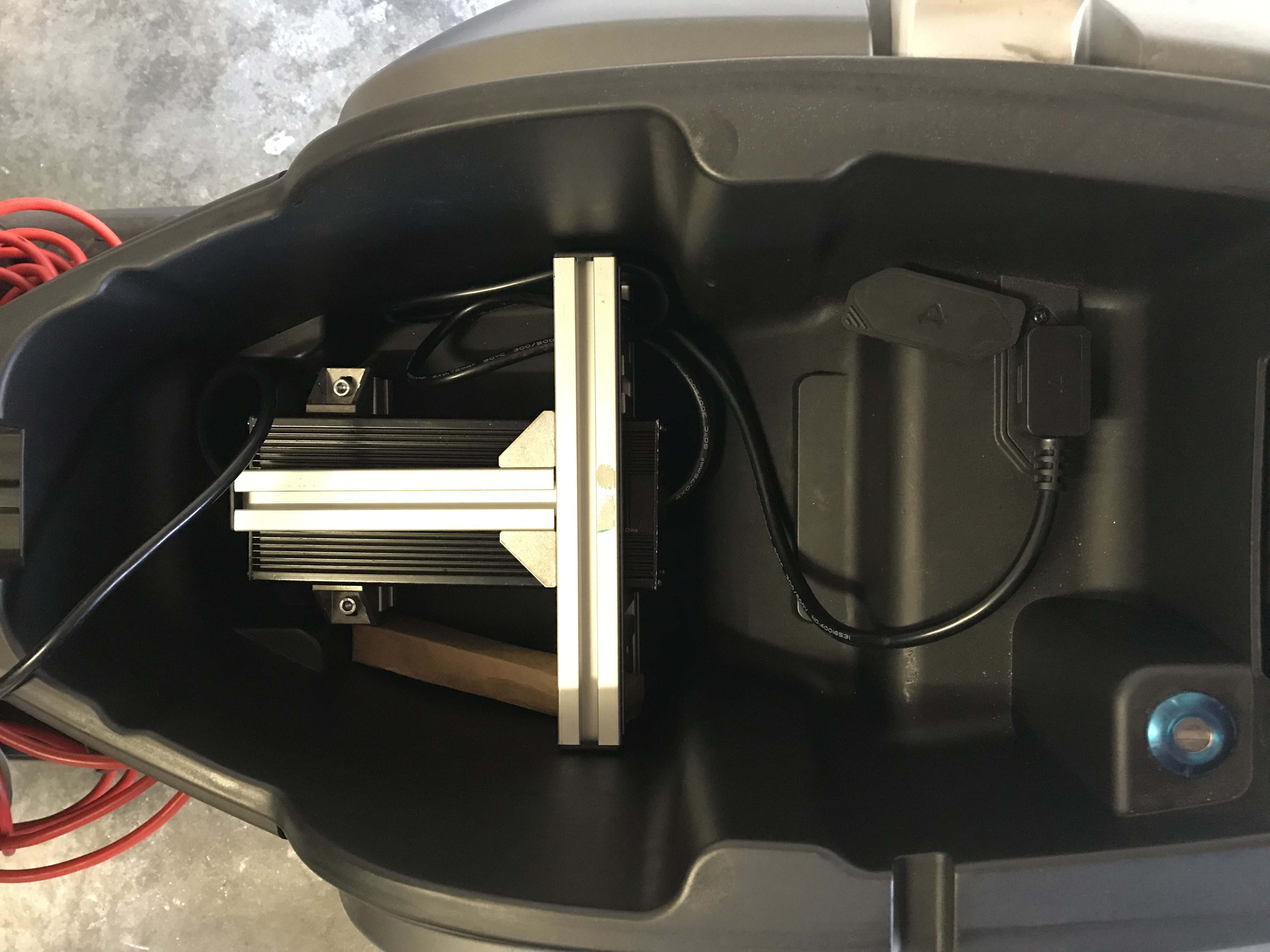 ich habe mir eine Halterung für das Ladegerät gebaut, um es unter dem Sitz mitzunehmen.