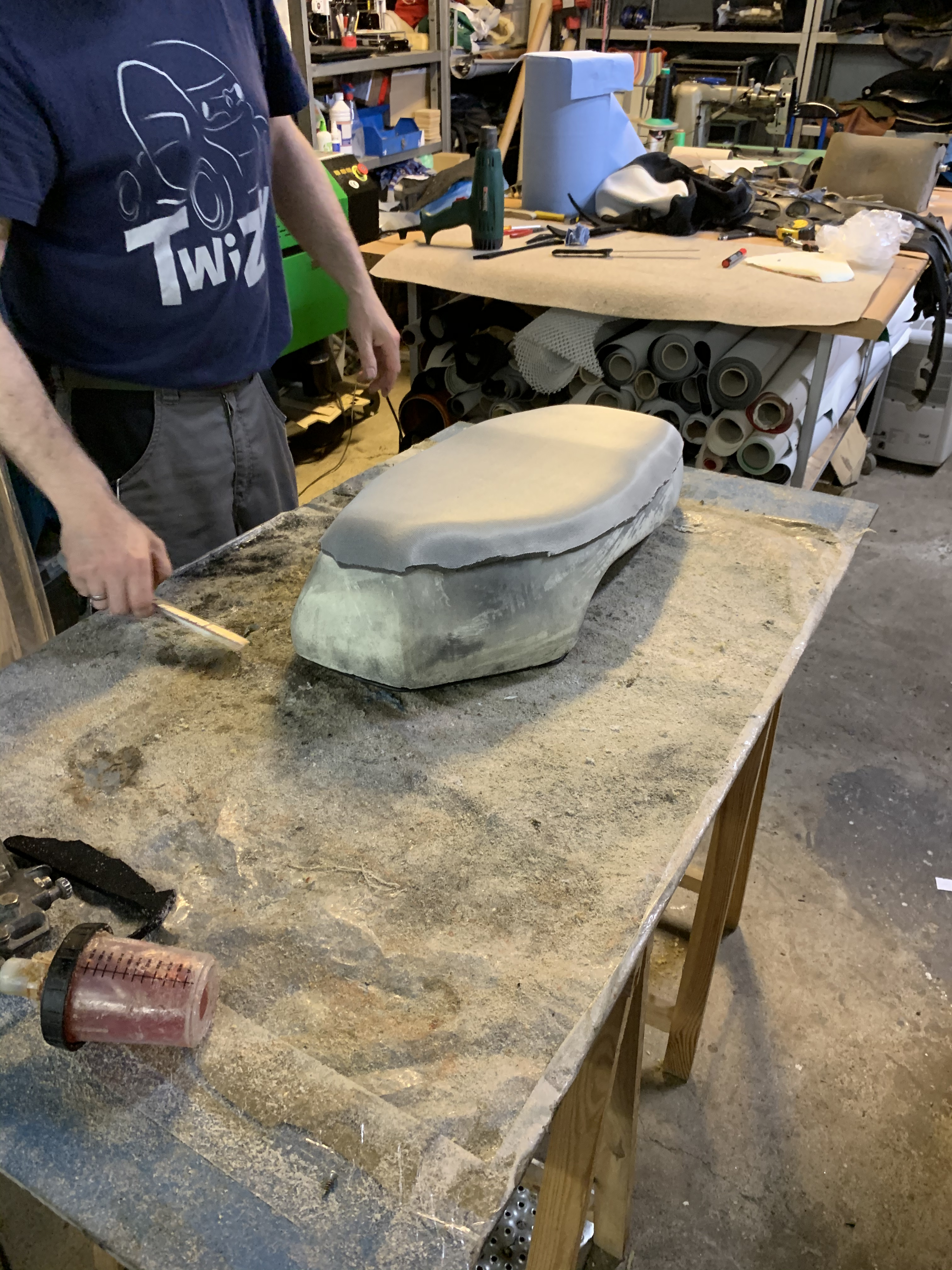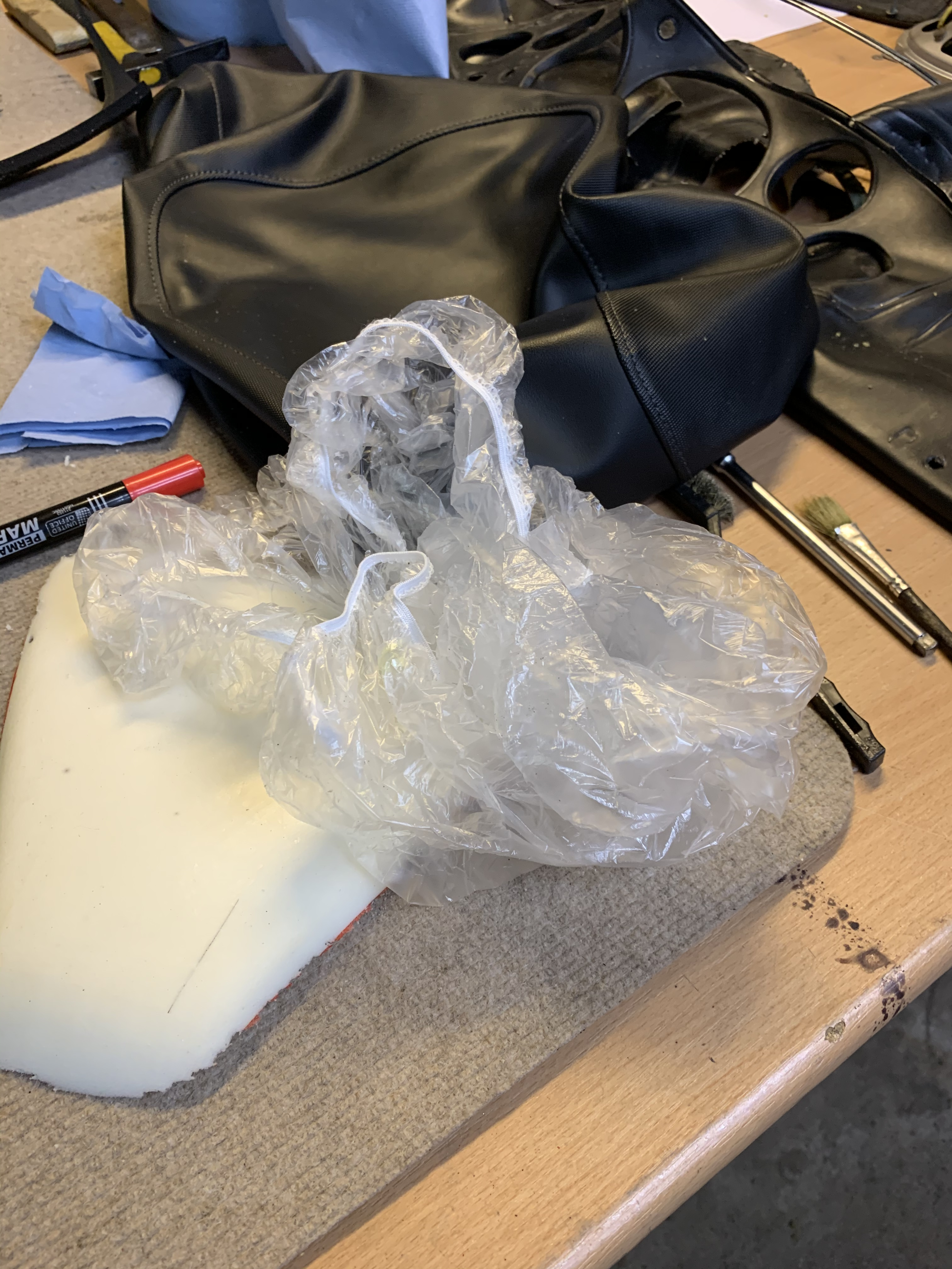 Dann wurden ca. 2 vom Schaumstoff der Sitzfläche abgetragen
