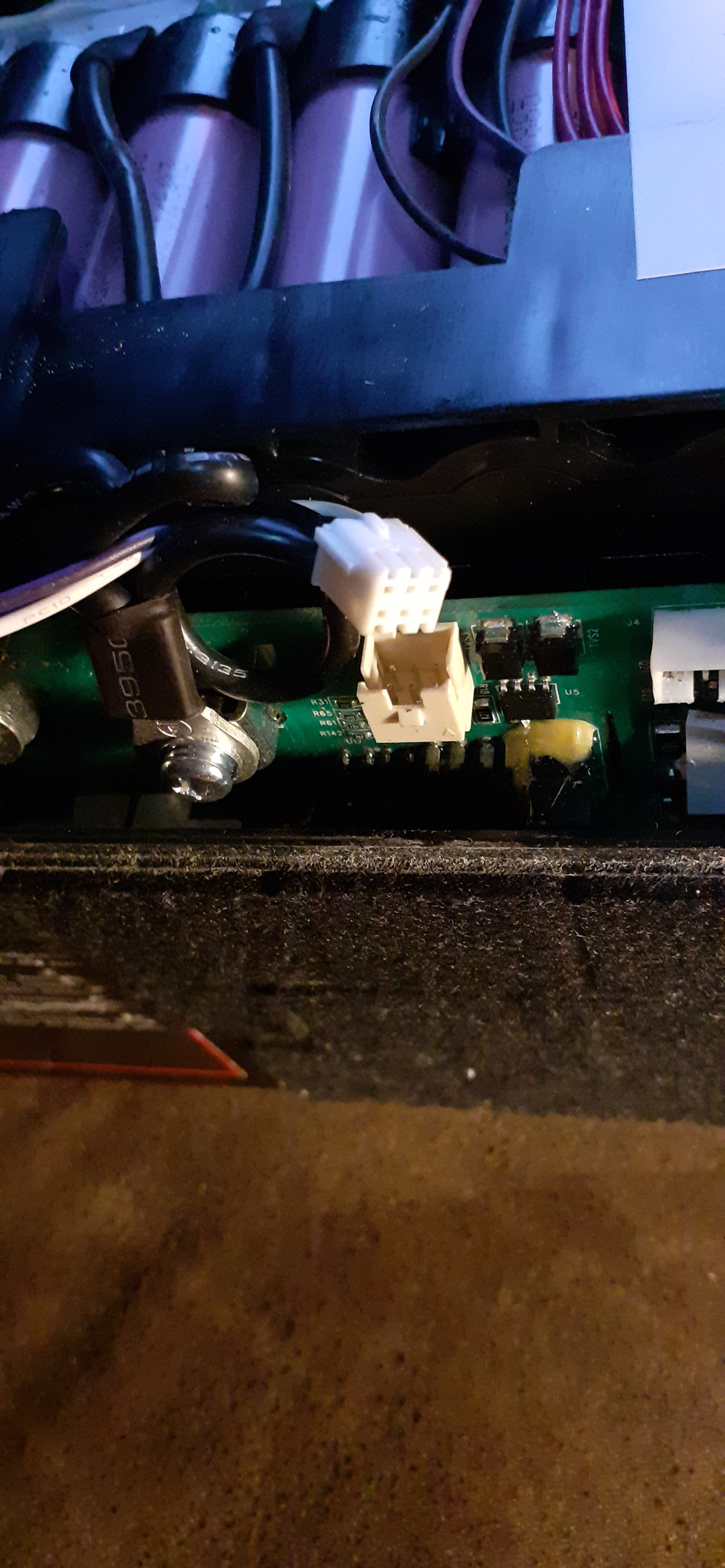 Wenn die Buchse im Akku ausgetauscht wird, dann mache den Akku soweit wie möglich stromlos. Klebe alle spannungsführenden Teile im Umfeld mit Isolierband ab. Ein Kurzschluss bei 48 oder 60 Volt Gleichspannung gibt einen fetzenden Lichtbogen. Unbedingt eine Schutzbrille tragen!!!