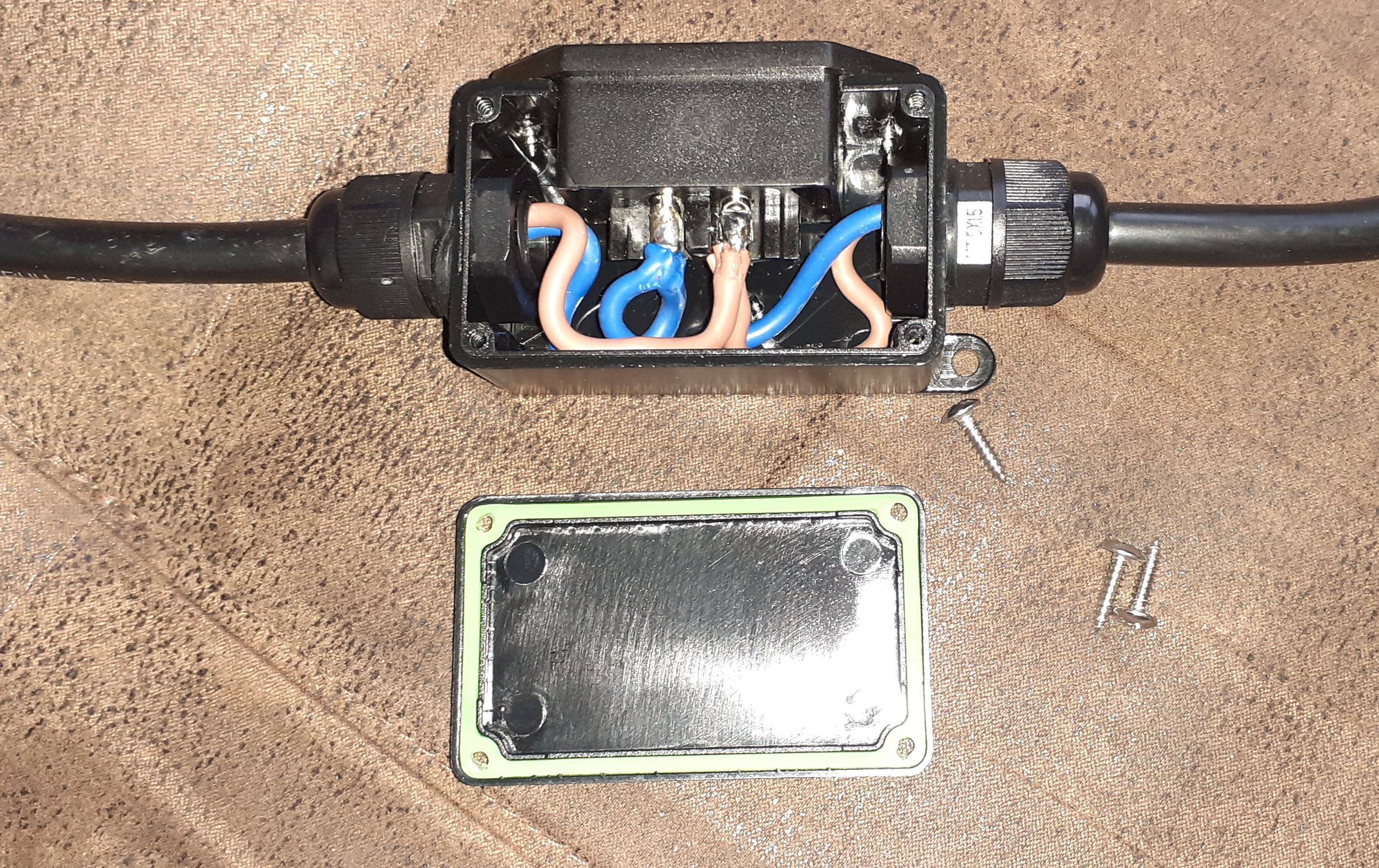 DIe Verkabelung innerhalb des Verteilergehäuses. Falls es interessiert. Müsste 2,0 o. 2,5mm² sein. Tippe auf 2,5.
