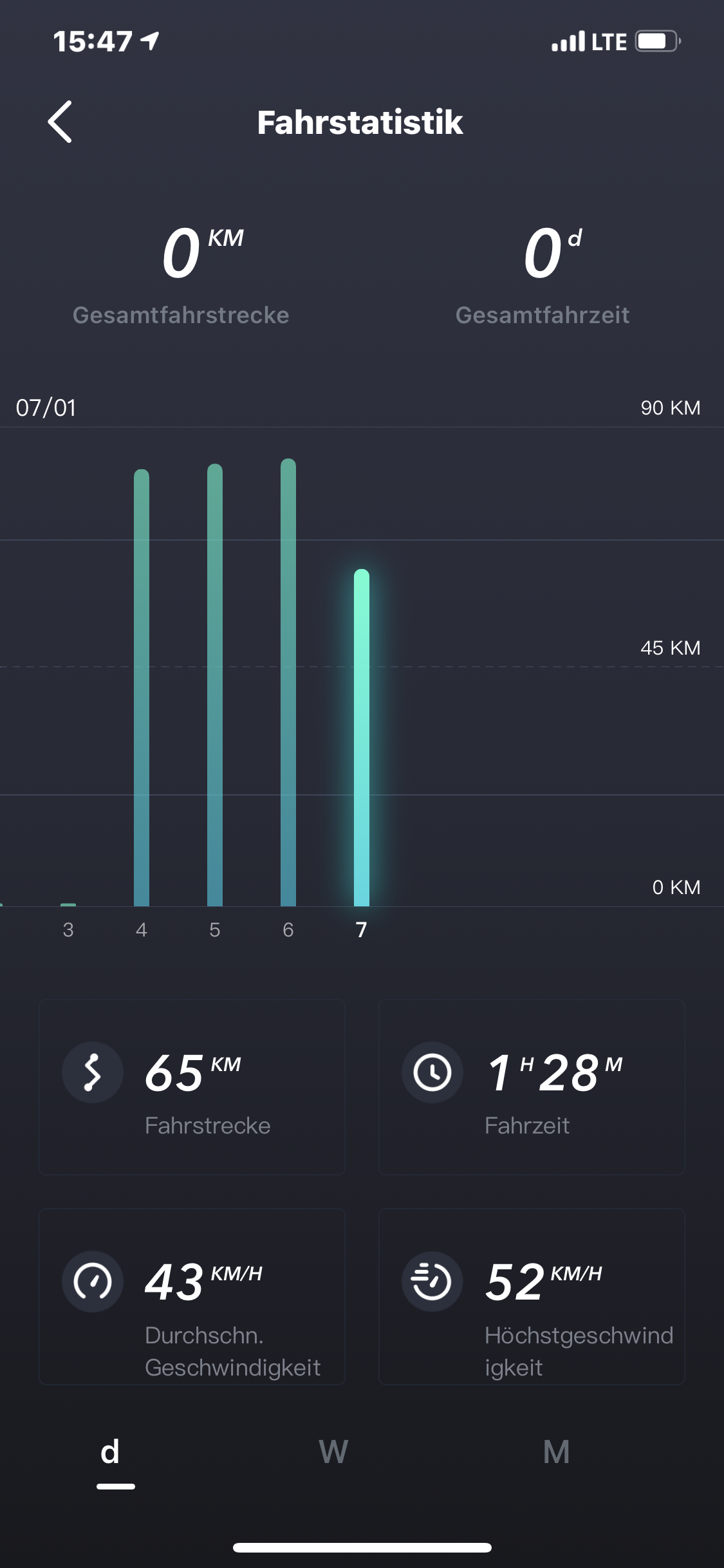 Dabei bemerkte ich, dass in der Fahrstatistik alle Anzeigen korrekt sind, mit Ausnahme der Gesamtkilometer und der Gesamtfahrzeit beide fehlten und stehen seitdem ständig auf null.