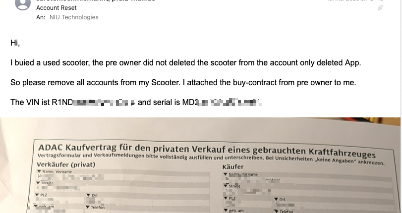 Also, bei mir funktionierte es auch ohne Kontaktaufnahme zu NIU. Merke auch keinen Unterschied von wegen "Zweitaccount". Ich kann alles machen, was in der App an Aktionen und Funktionen angeboten wird.