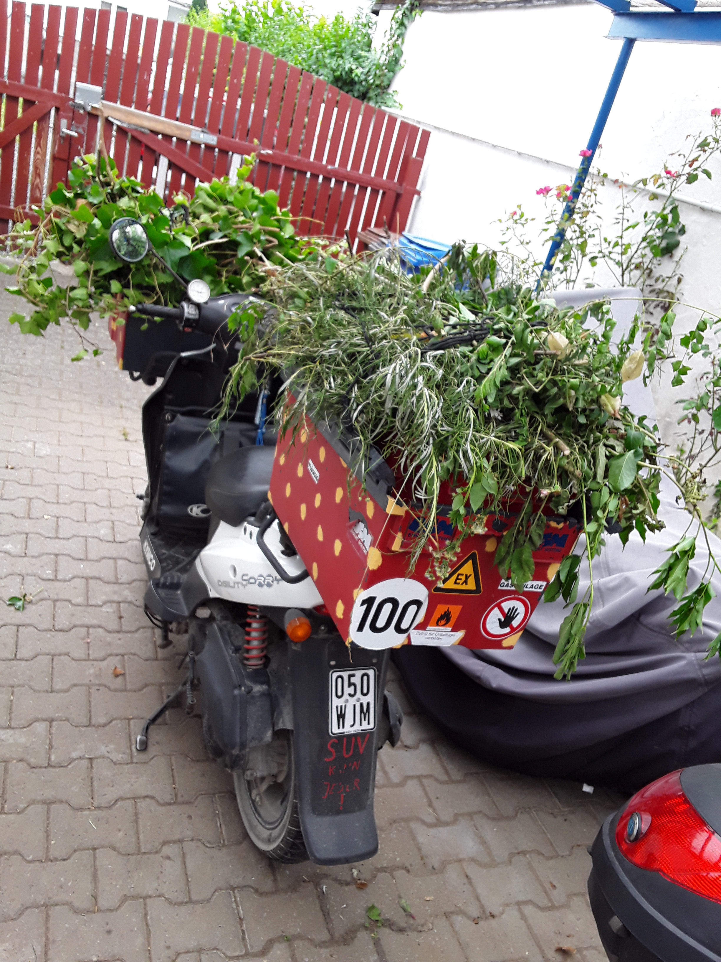 Für Krempel und Co empfehle ich immer wieder sowas wie meinen treuen KYMCO CARRY Lastenroller, darf an sich in keinem ordentlichen Haushalt fehlen, seit sieben Jahren bei mir im Einsatz. Elektrisch gibt es da noch nix vergleichbares.Geht auch noch mit Packtaschen !