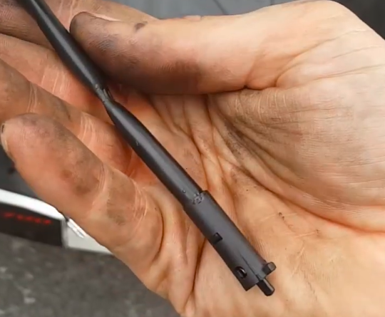 Nach meiner Interpretation, sollte der schwarze kleine Nippel bei nicht gezogener Bremse herausstehen und wenn man die Bremse zieht rutscht der hinein?! (umgekehrt wird es wohl nicht sein)