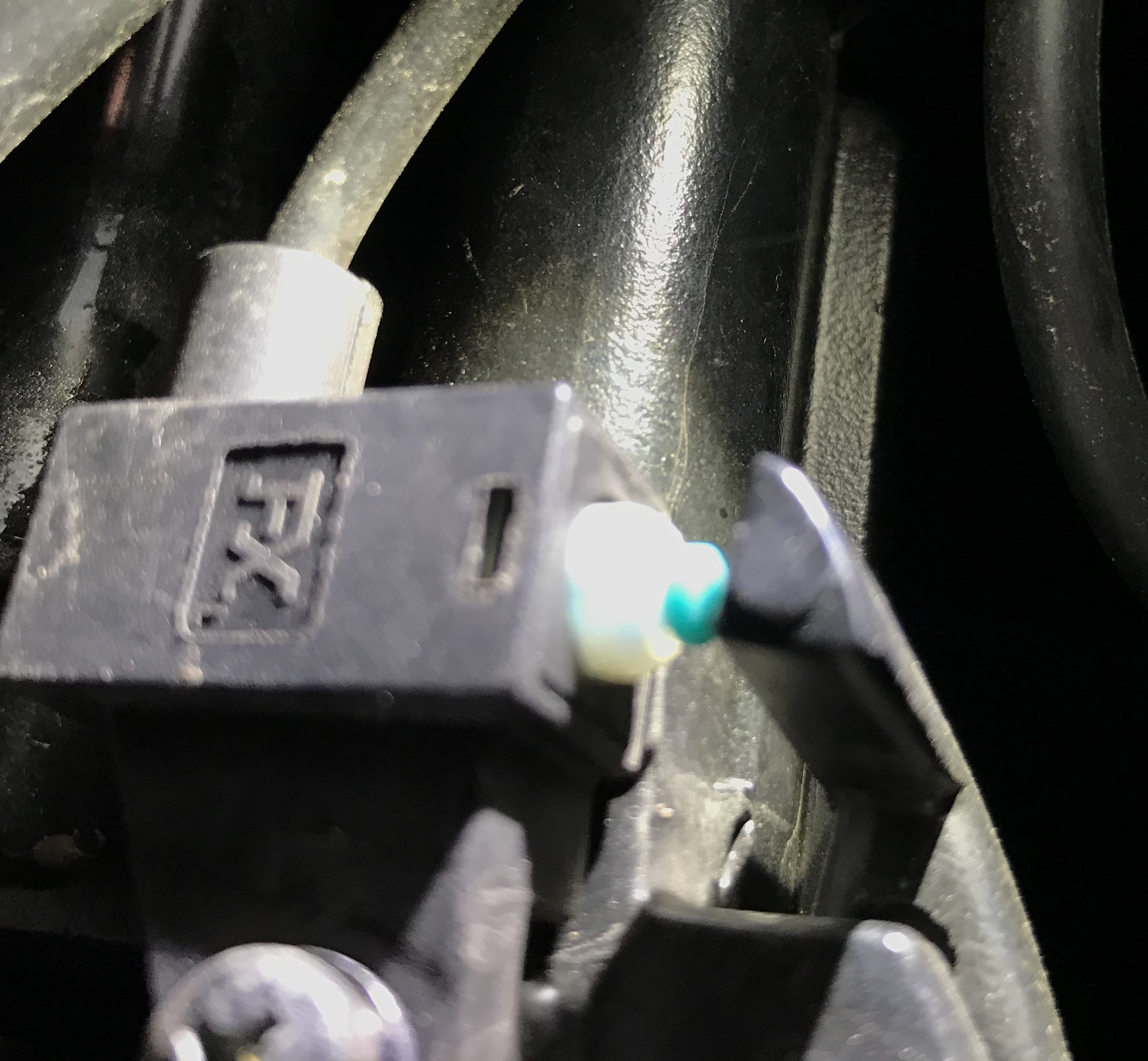 Durch die Gummidichtung ist anscheinend nahezu nichts vom Kontaktspray angekommen. Durch meine 3-maligen Versuche ist diese weiße Mini Gummidichtung aufgerissen.