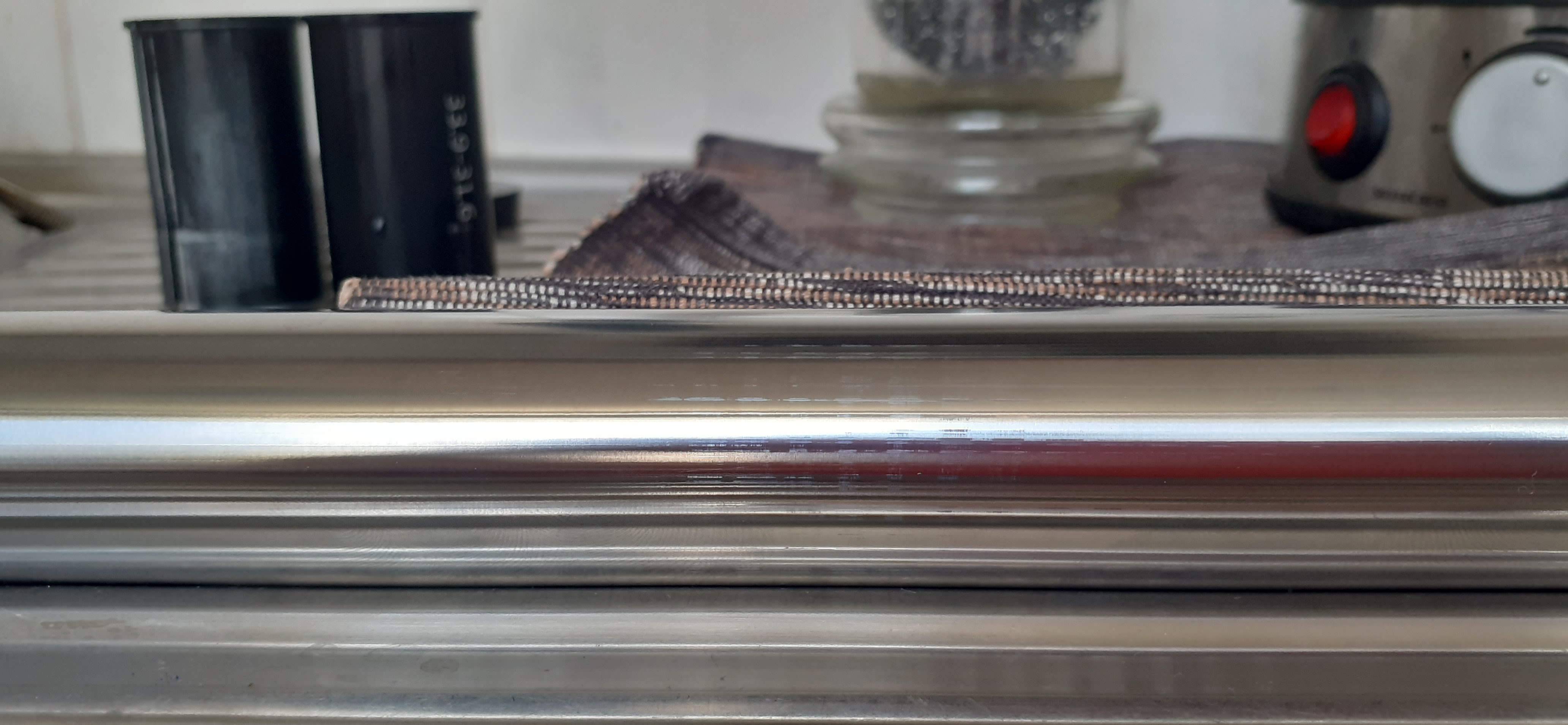 die Rattermarken haben nichts mit dem abgeschliffenen Hülsen im Hintergrund zu tun. Der eine musste etwas stärker geglättet werden, weil die Gabelbrücke einen leichten Schlag hat.