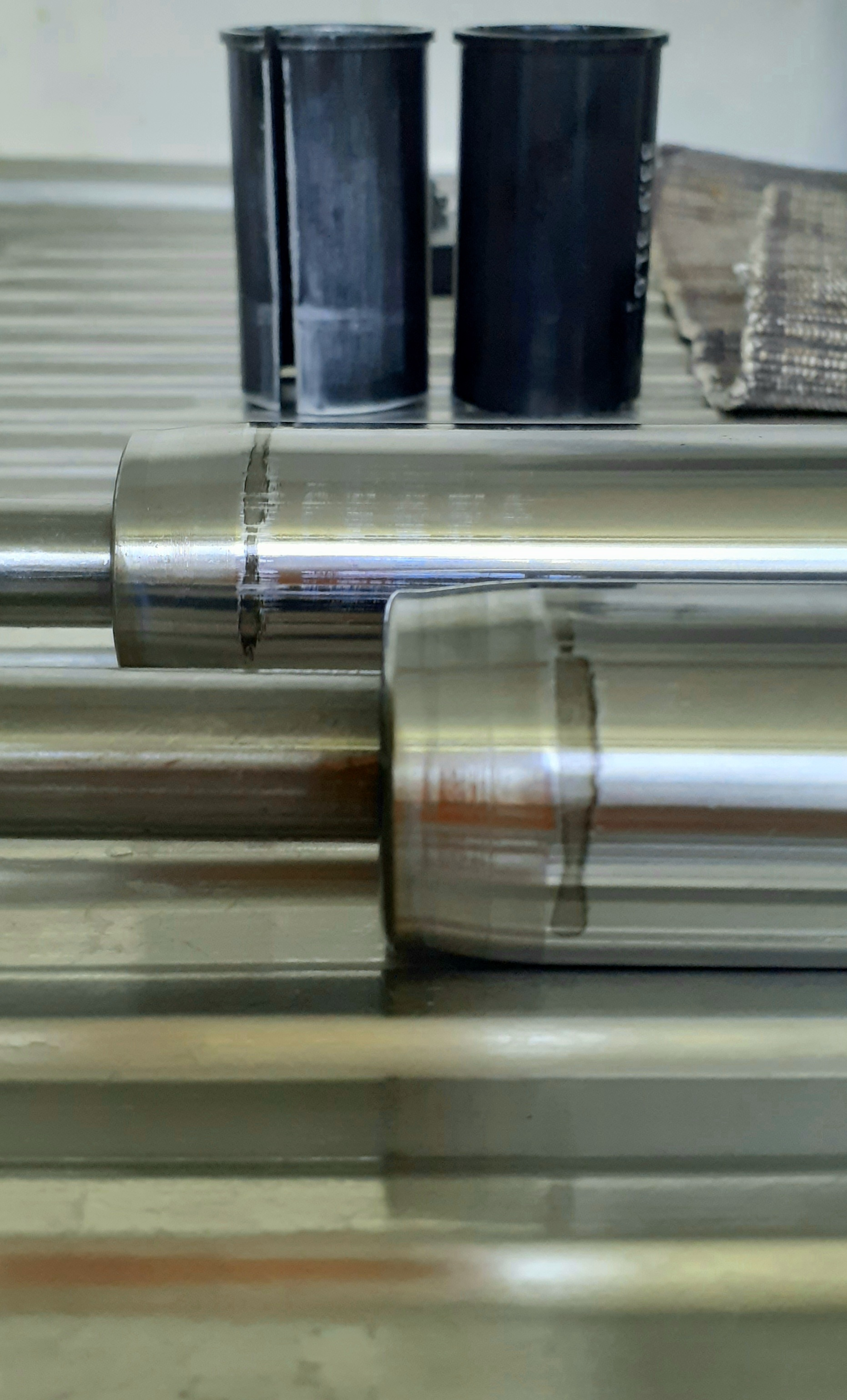 Ein Holm mit Rattenmarken direkt unterhalb der Dichtringe und im unteren Bereich.
