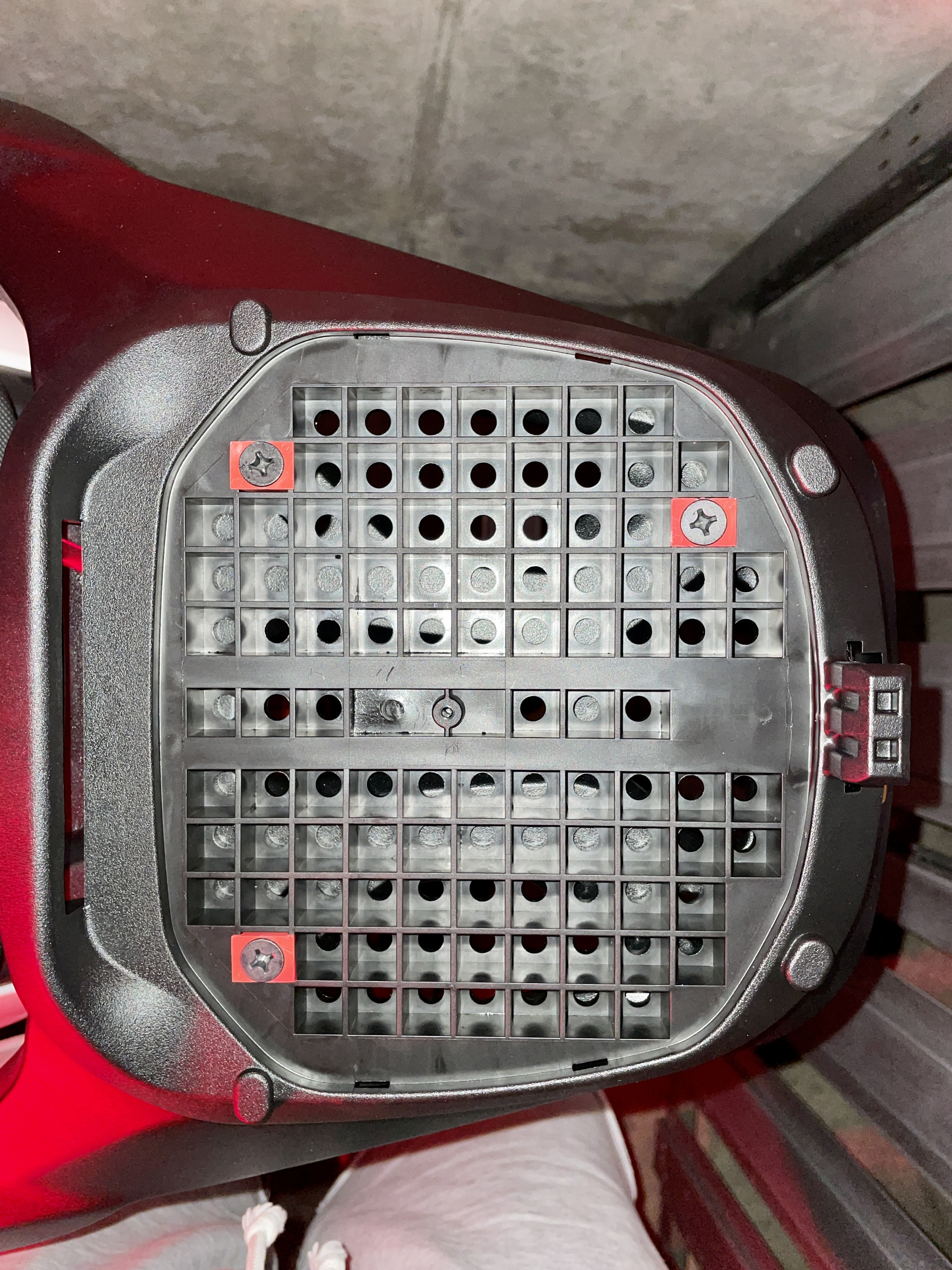 Die 5. Schraube ging etwas schwer rein, was aber daran lag, dass sie auch am Gewinde lackiert war. Hab sie dann 3-4x rein und rausgeschraubt zum „reinigen“ und dann ging sie auch problemlos ins Gewinde unter der Verkleidung. Nur die Grundplatte des TopCase will nicht wie ich will