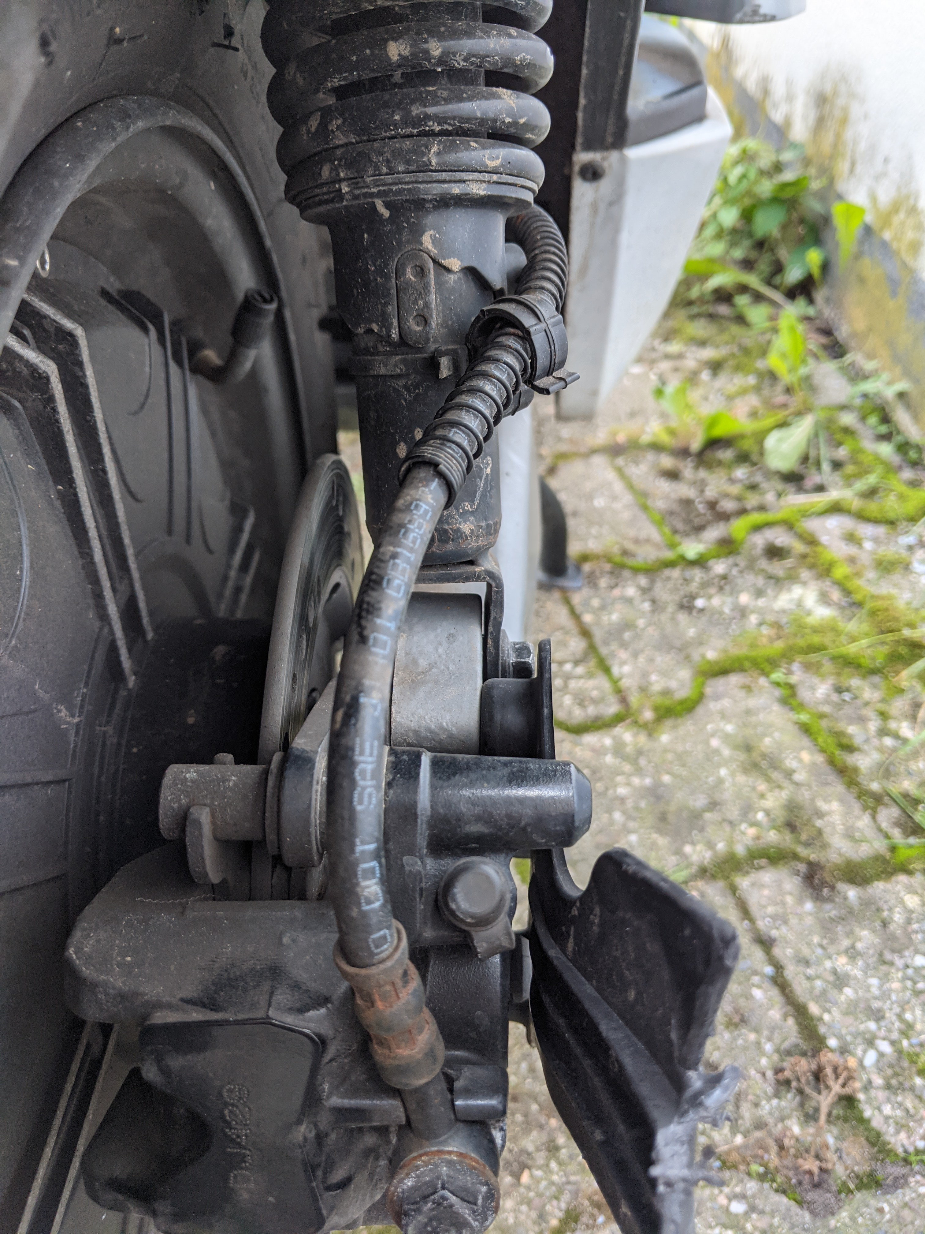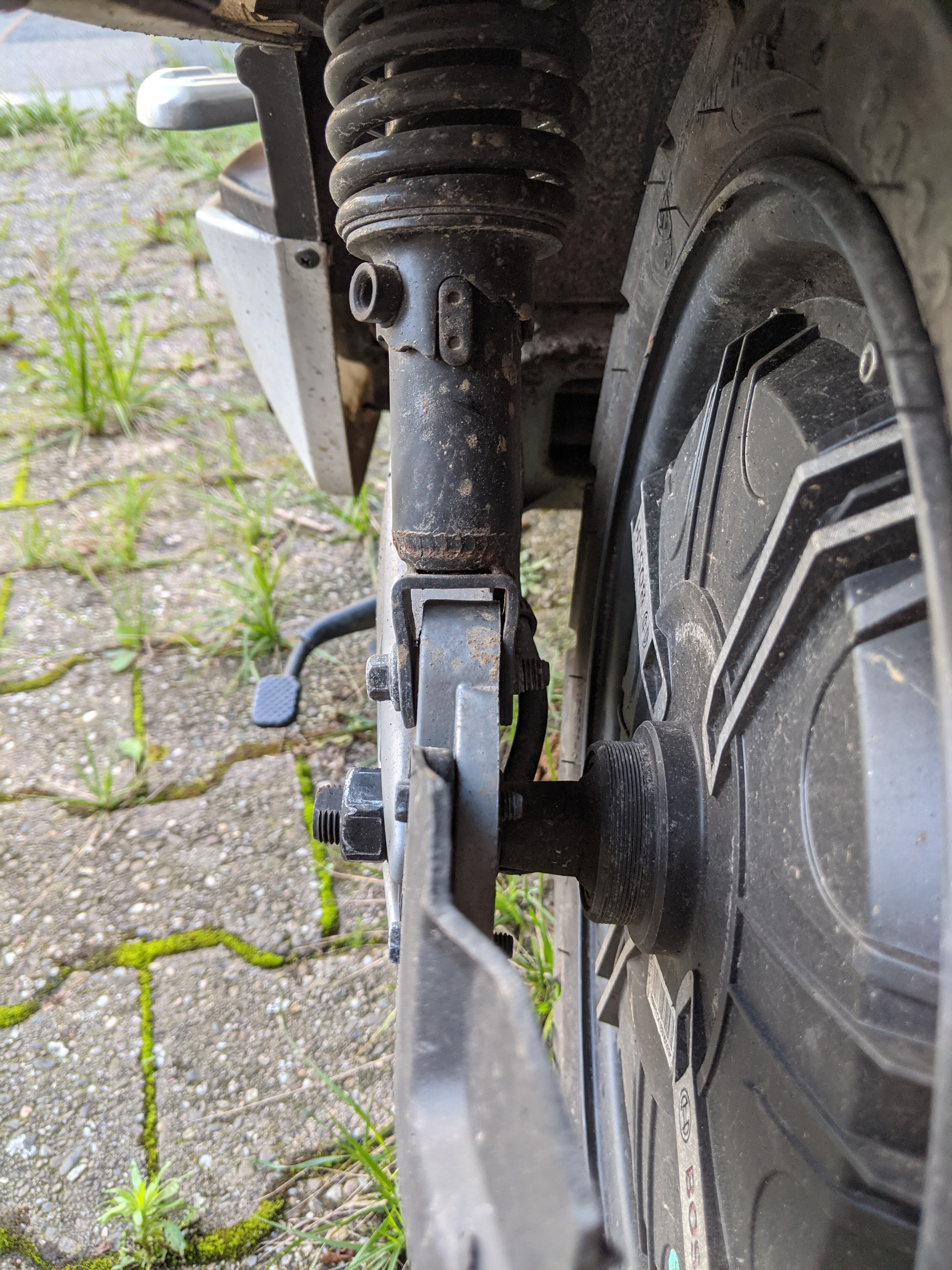 Eine Ferndiagnose ist ja ohnehin schwierig und leider sieht alles andere Augenscheinlich gerade aus mit meinen Laienaugen. Was würde sich denn am ehesten verbiegen? Das Hinterrad/Motor scheint ja laut Explosionsplan ein ganzen Teil zu sein. Kann da die Achse schief werden? Es fühlte sich durch den schweren ein und Ausbau so an. Eventuell auch nur Schwinge und Stoßdämpfer?