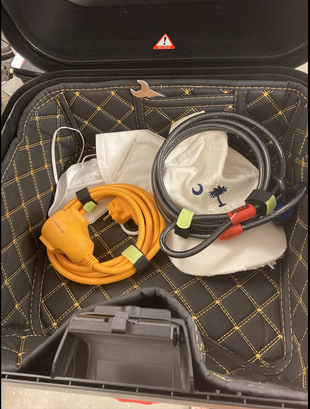 - ein 2m Abus Sicherungsseil, um den Roller bedarfsweise am Laternernmast o.ä. zu sichern