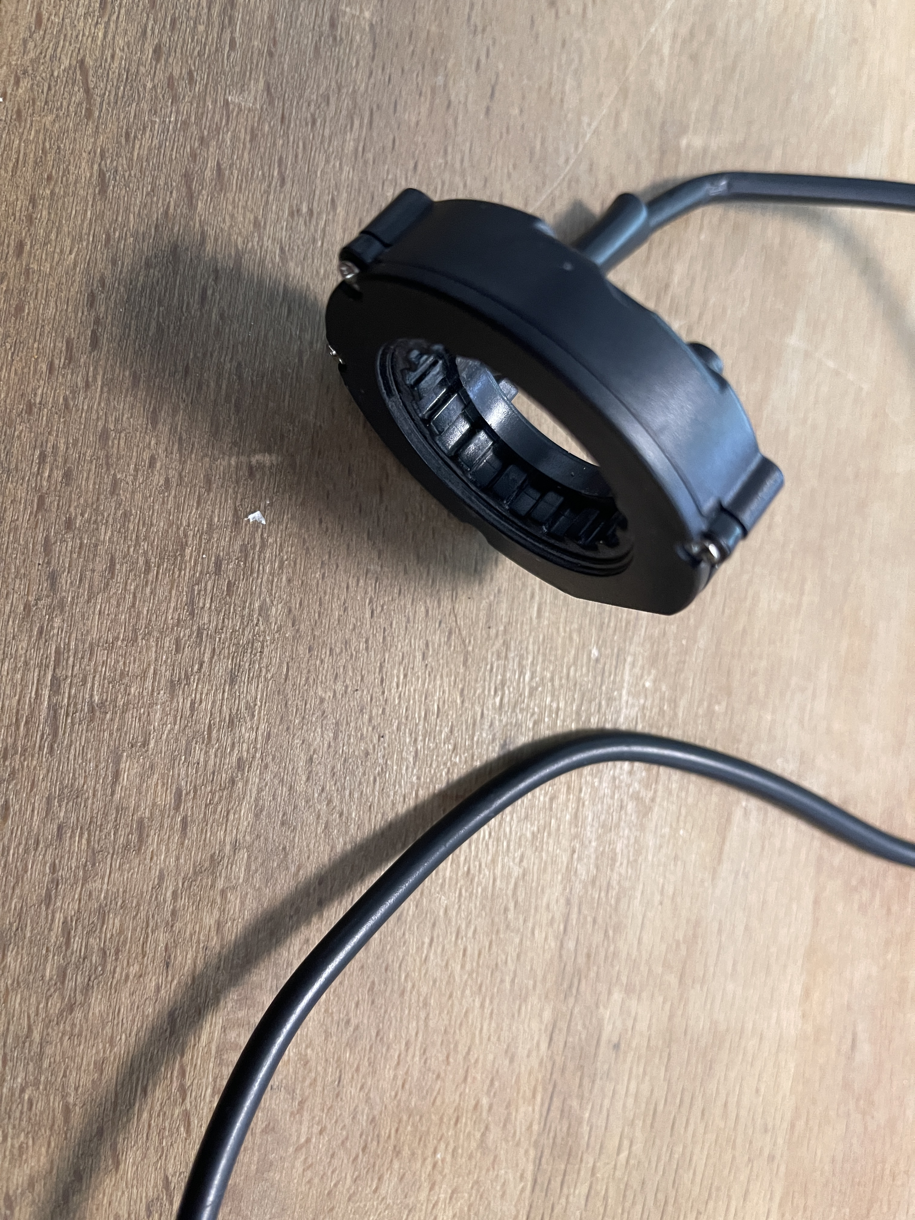 In die Zähne des Rings greift der Gasgriff und das Innenleben ist gegenüber dem Körper drehbar und federnd gelagert. Der silberne Streifen ist magnetisch, der führt dann am Hallsensor vorbei: