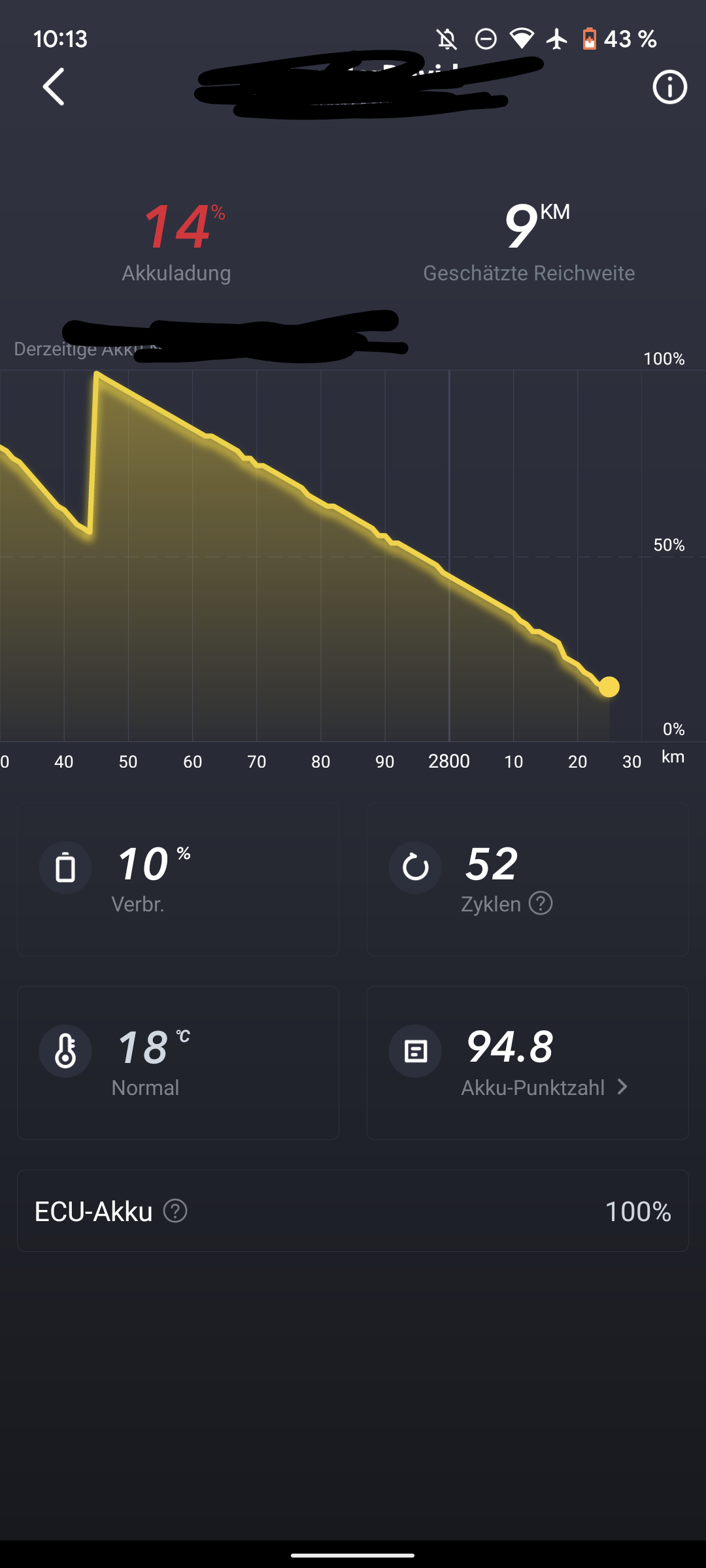 Ich persönlich würde das mit meinem alternativ Controller auch nicht mehr schaffen so eine Reichweite zu erzielen mit Stufe 1 komme ich auf 1,3 % runter weniger geht nicht da hab ich 40 - 45 kmh eingestellt.