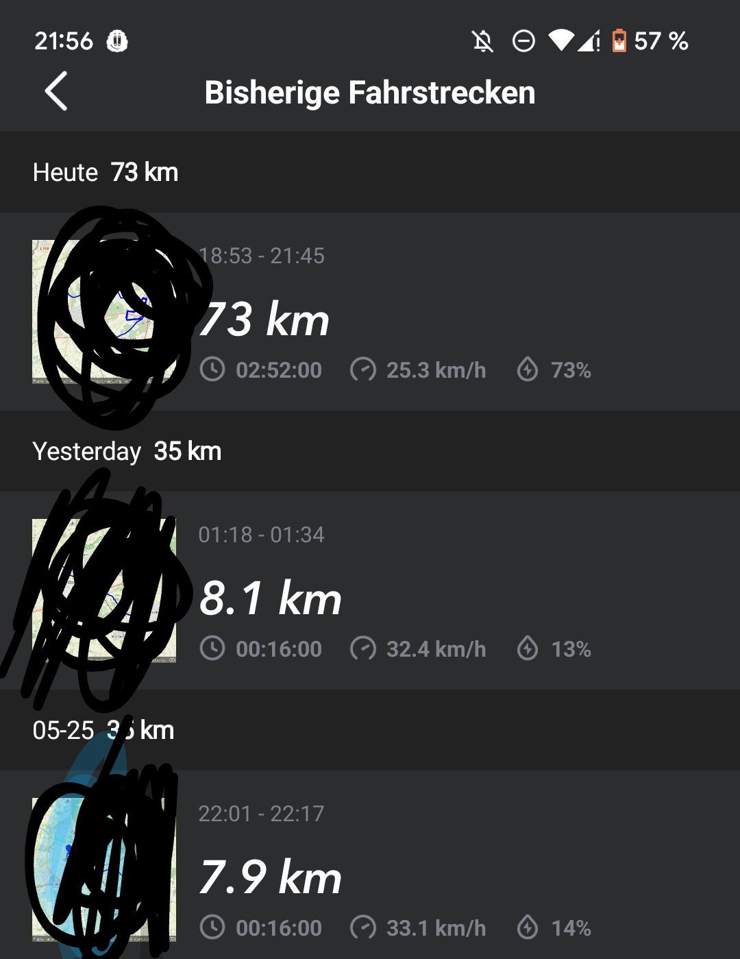 Dabei kam raus das ich für 73 km 73% gebraucht habe.