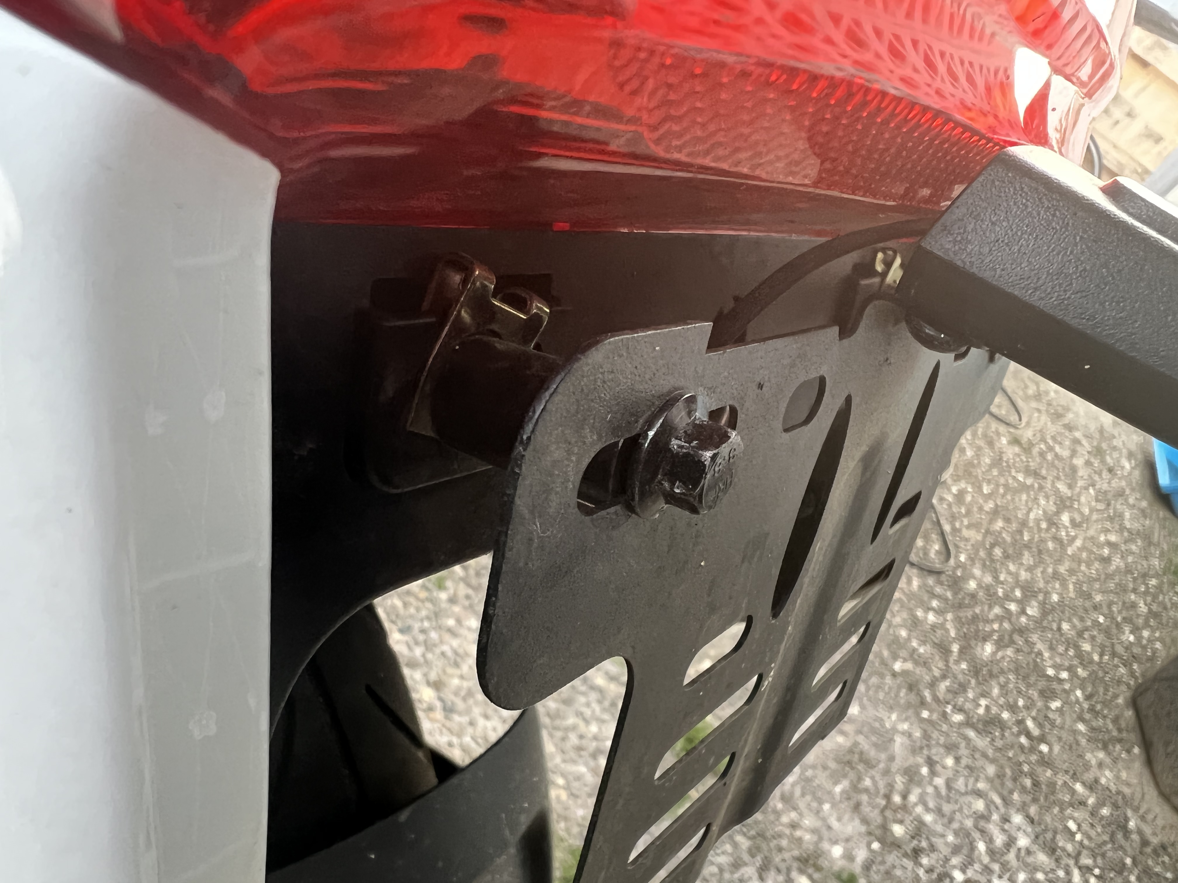 Du hast im Grunde genommen eine zusätzliche Kennzeichenleuchte an einem "Zubehörkennzeichenhalter". Der originale Kennzeichenhalter sitzt tief drin, das Kennzeichen wird vom Rücklicht angeleuchtet. Nur Kennzeichen in der Größe sind bei uns unüblich, von daher sind dann zumeist etwas rausstehende Halter mit eigener Leuchte verbaut, bei mir ist sogar der Kabelbaum unterm Helmfach dafür vorgerüstet gewesen.