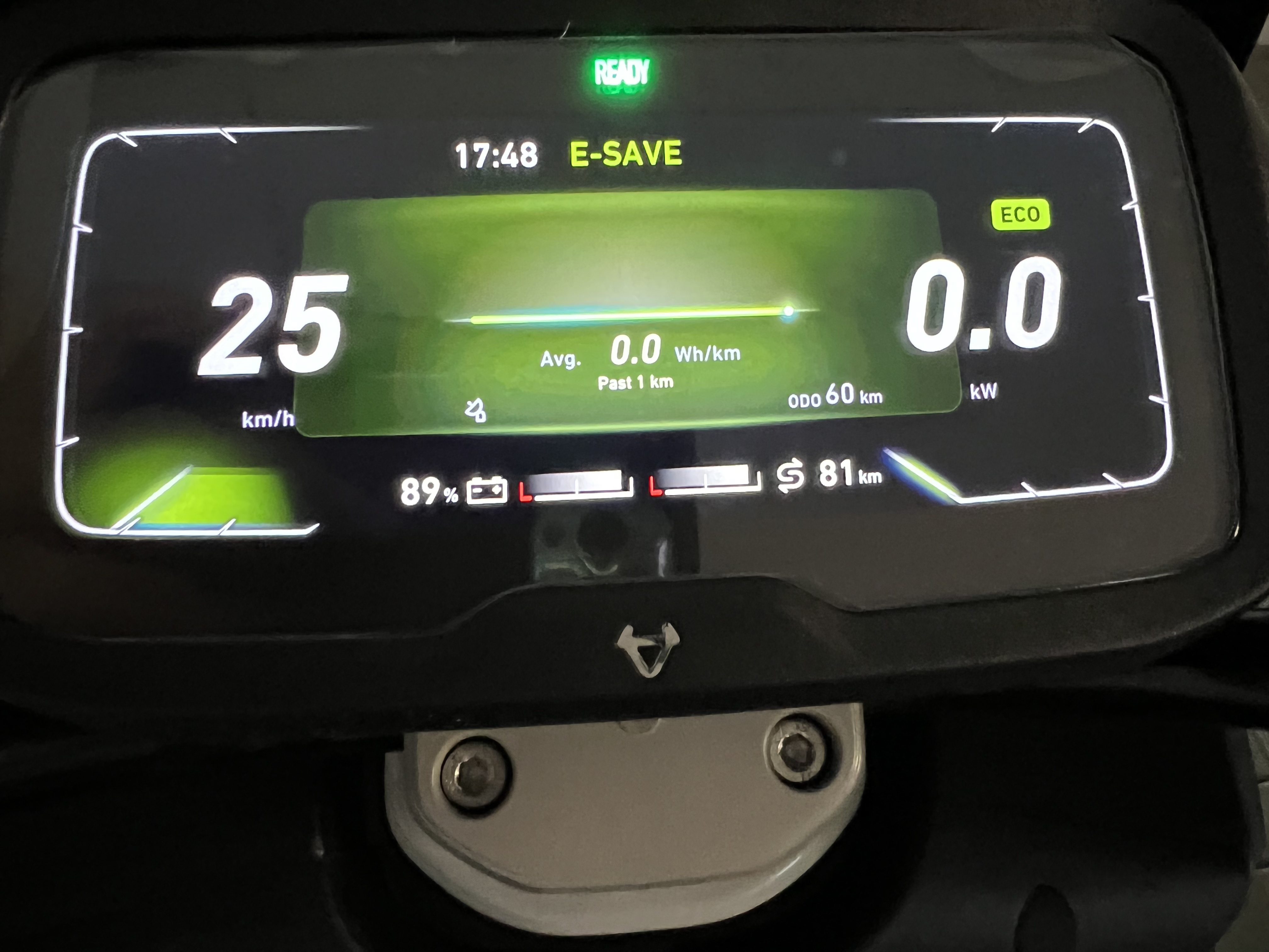 - Heute mal eine kurze Testfahrt zum maximalen Speed: Modus Sport, Akku 82 Prozent, lt. Display 89 km/h und lt GPS 85 km/h.
