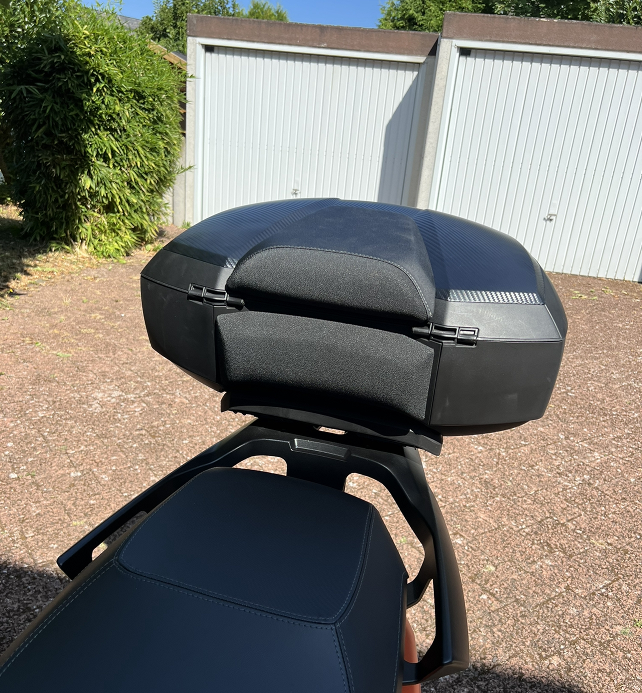 ich habe den großen, originalen Gepäckträger von Niu montiert. Darauf habe ich das Shad SH58X Topcase mit zusätzlichen Polstern.