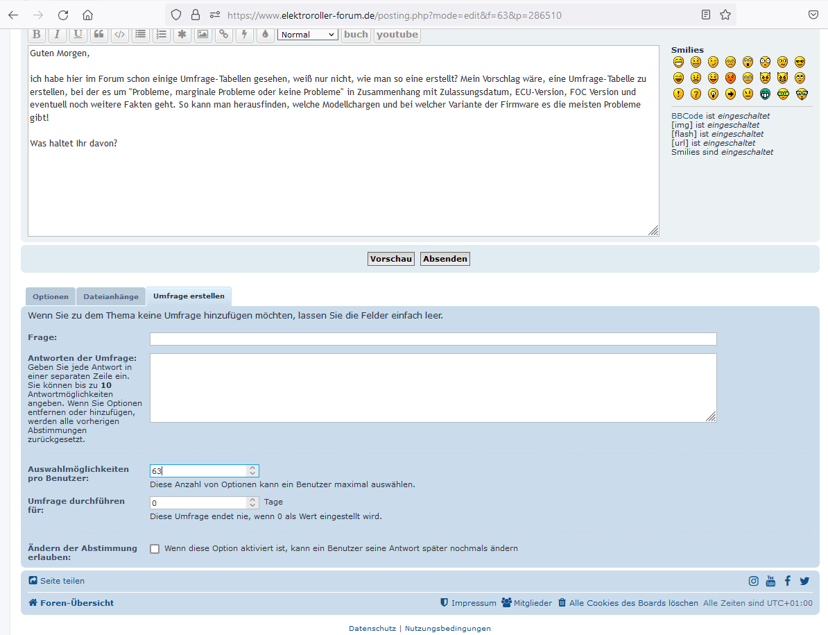 Umfrage kann ich nachher erstellen oder du bittest den mod aus einem thread eine zu machen.