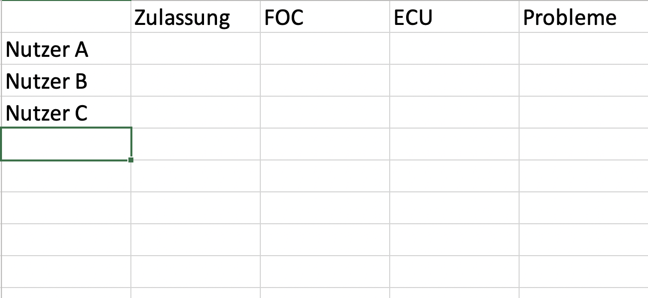 ... danke für Deine Antwort, aber so ganz hast Du mein Anliegen nicht verstanden! Ich denke da eher an so ein Drop-Down-Menu wo man sowohl sein Herstellungszeitpunkt (.z.B. Januar 2022), seine ECU, seine FOC Version und die Frage nach Problemen damit einstellen kann - also zu einem Nutzer mehrere Angaben in einer Tabelle - so ungefähr: