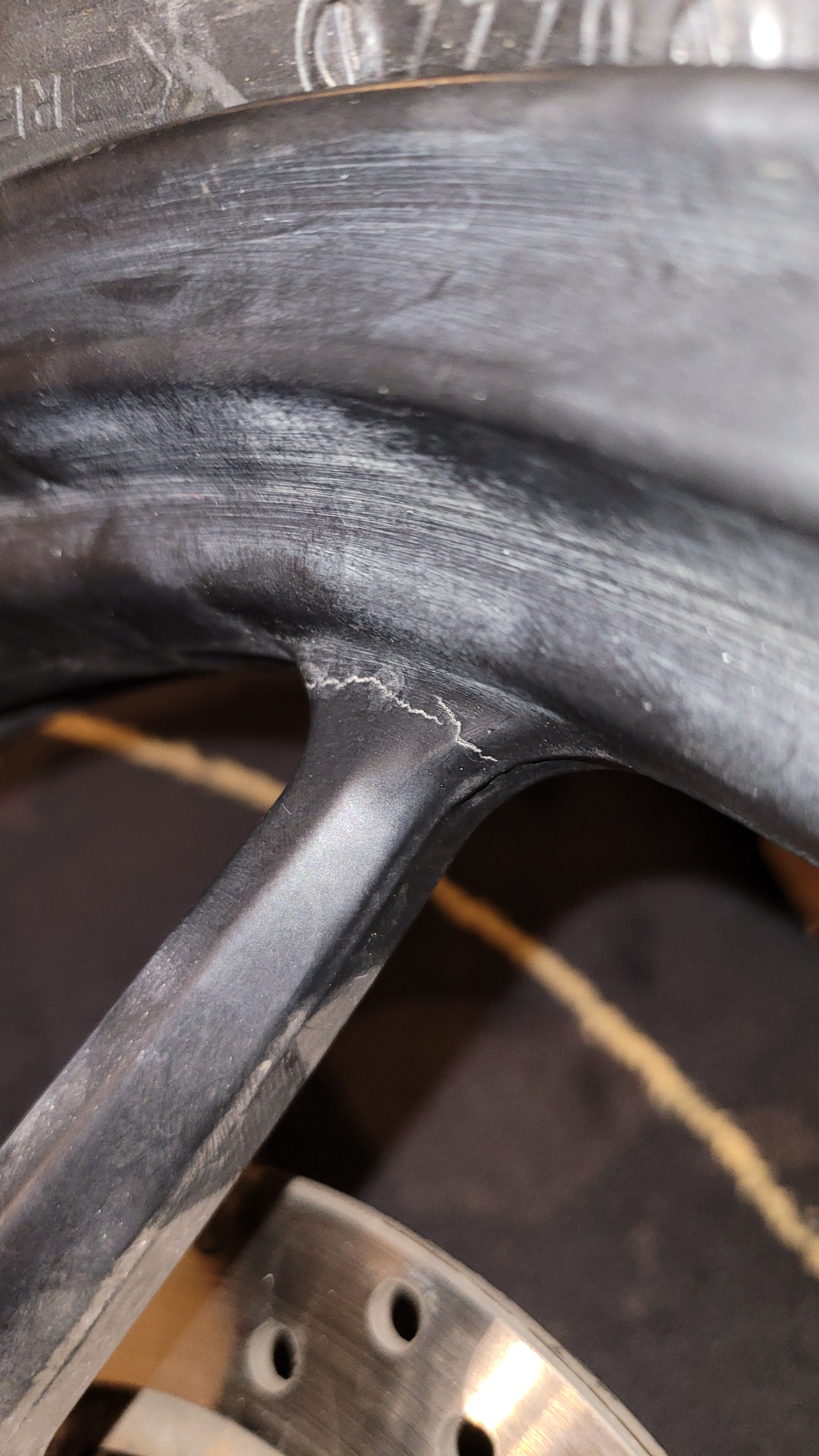 Ich wollte heute den vorderen Reifen auf Michelin City Grip 2 wechseln (der hintere ist schon gemacht) und habe mich schon gewundert warum in dem Reifen fast keine Luft mehr war... Beim Fahren habe ich nichts gemerkt. Habe dann den neuen Reifen draufgezogen und es ging einfach keine Luft rein, auch mit Spanngurt um den Reifen nicht. Habe dann nach 1 Stunde fast augegeben als ich zufällig einen Haarriss an der Felge gesehen habe. Wie kann so etwas passieren? Auf dem hinteren Reifen könnte ich es mir ja noch vorstellen, weil da auch etwas Gewicht drauf ist aber vorne???