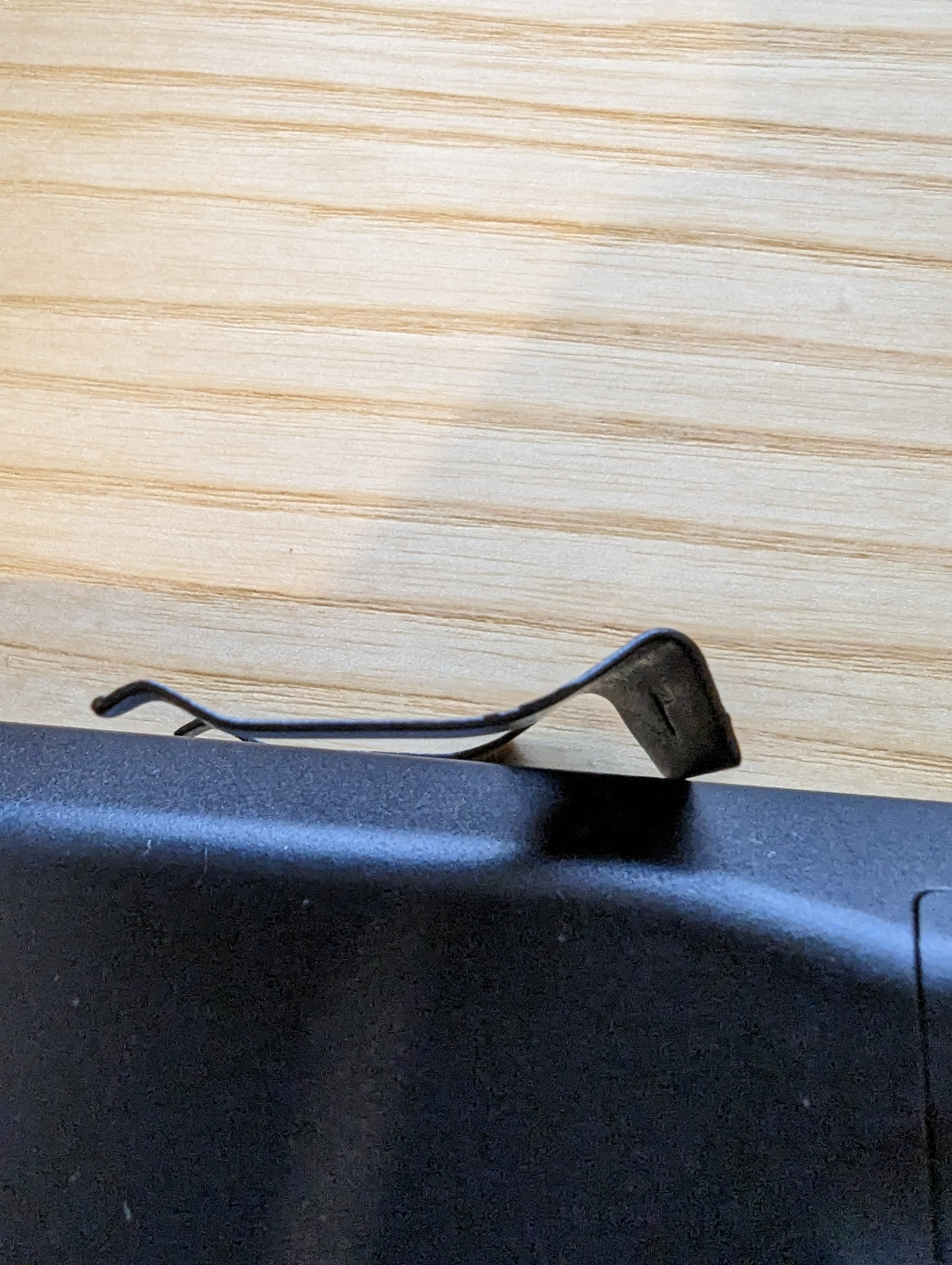 Da bin ich mir gar nicht mehr sicher wie das war. Das Sitzbankfach muss raus, sind wohl 4 Schrauben und ein oder zwei Steckverbindungen, und dann weiterschauen. Evtl. bekommst Du die Klammer mit einer Spitzzange dann schon wieder in Position geschoben.