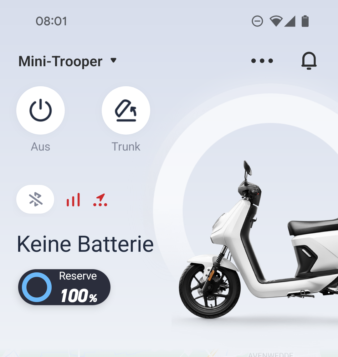 Ob der Roller eingeschaltet ist oder nicht, er hat immer Verbindung zur App, wenn die mit dem Roller eingerichtet wurde. Wenn nicht dann ist die ECU Batterie leer, wird in der App dann mit 39 % angezeigt. Eine ordentliche Übergabe /Einweisung hat es wohl nicht gegeben.