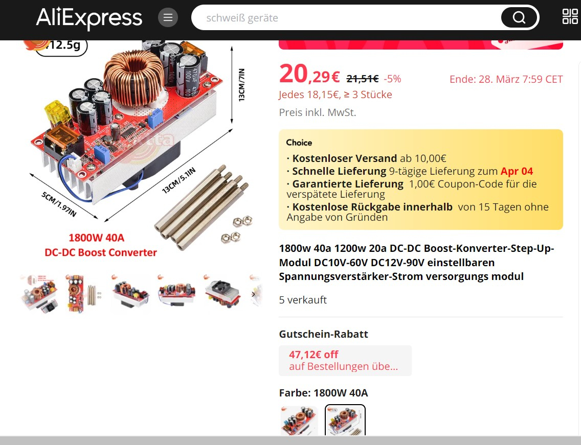 Speist du damit ein?conny-r hat geschrieben: ↑Mi 20. Mär 2024, 14:17Geht ganz einfach mit diesem Modul, habe 3 in Arbeit und alle erfüllen die Bedingungen. Gehen auch bis 70 Volt am Eingang.
