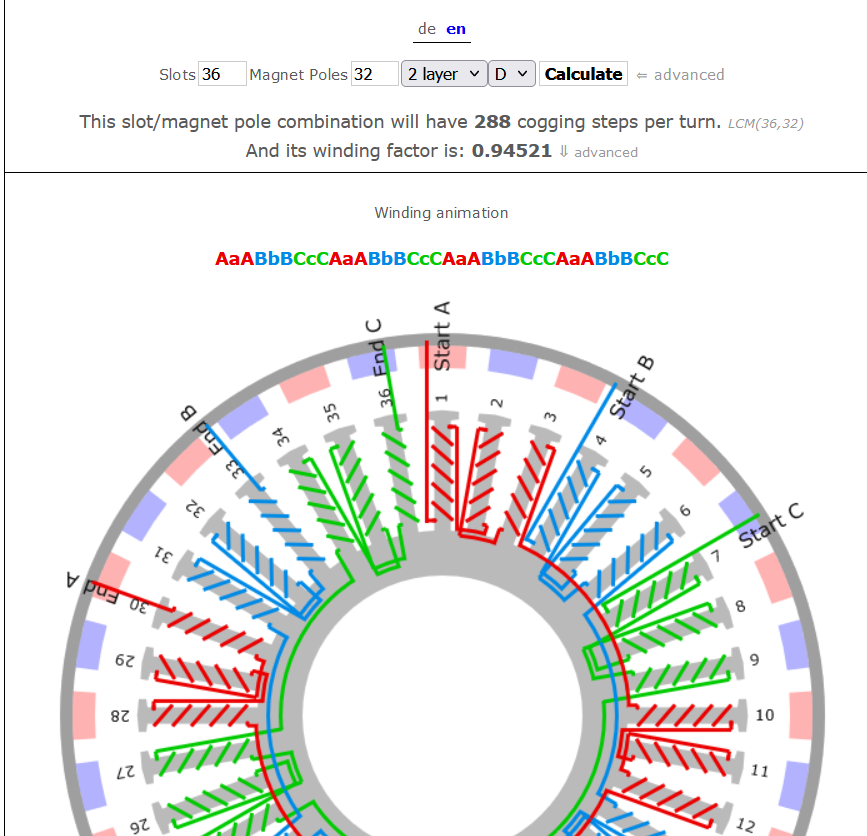 Mit 30H und 40H ist die Länge der Permanentmagnetplatten im Motor gemeint. Wie breit und wie dick diese sind, kann der Motorenhersteller natürlich auch beeinflussen, wobei auf dem gleichen Umfang bei 30 Pol-Paaren die 60 Polplatten natürlich entsprechend schmaler ausfallen, als wenn es nur 32 Polplatten (bei 16 Pol-Paaren) sind.