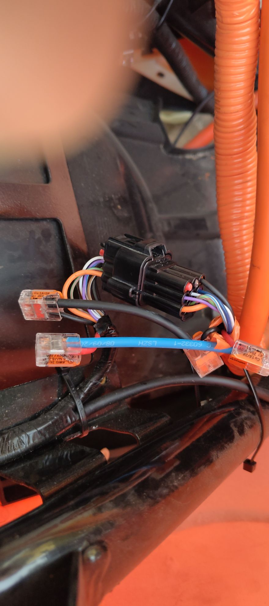Naja Ende vom Lied ist, dass der ganze Steckverbinder nun endgültig zusammen gebacken ist, man sieht es hier im innern wie der Kunststoff flüssig geworden ist. Die Säcke sind vom Querschnitt runter in einem der Y-Kabel-Riffelröhrchen still und heimlich. Hier sieht man das Kabel das zu dem XT60 Stecker geht, welches an die Original Ladebuchse geht, ist irgendwas um die 2-3mm2 herum (AWG) was OK ist. Hier am Stecker sind es deutlich weniger Querschnitt und die Kontakte im Stecker halten wohl noch weniger Strom aus. Hab es nicht so professionell wie @heinr gemacht, sondern einfach ein Stück 4mm2 mit WAGO Klemmen dazwischen, da der Stecker eh zusammen gebacken ist, müsste wenn der wieder trennbar werden soll, eh alles "neu machen". Hier sieht man auch nochmal sehr deutlich den Querschnittsunterschied. Hab natürlich alles wieder schön eingewickelt und festgezurrt.