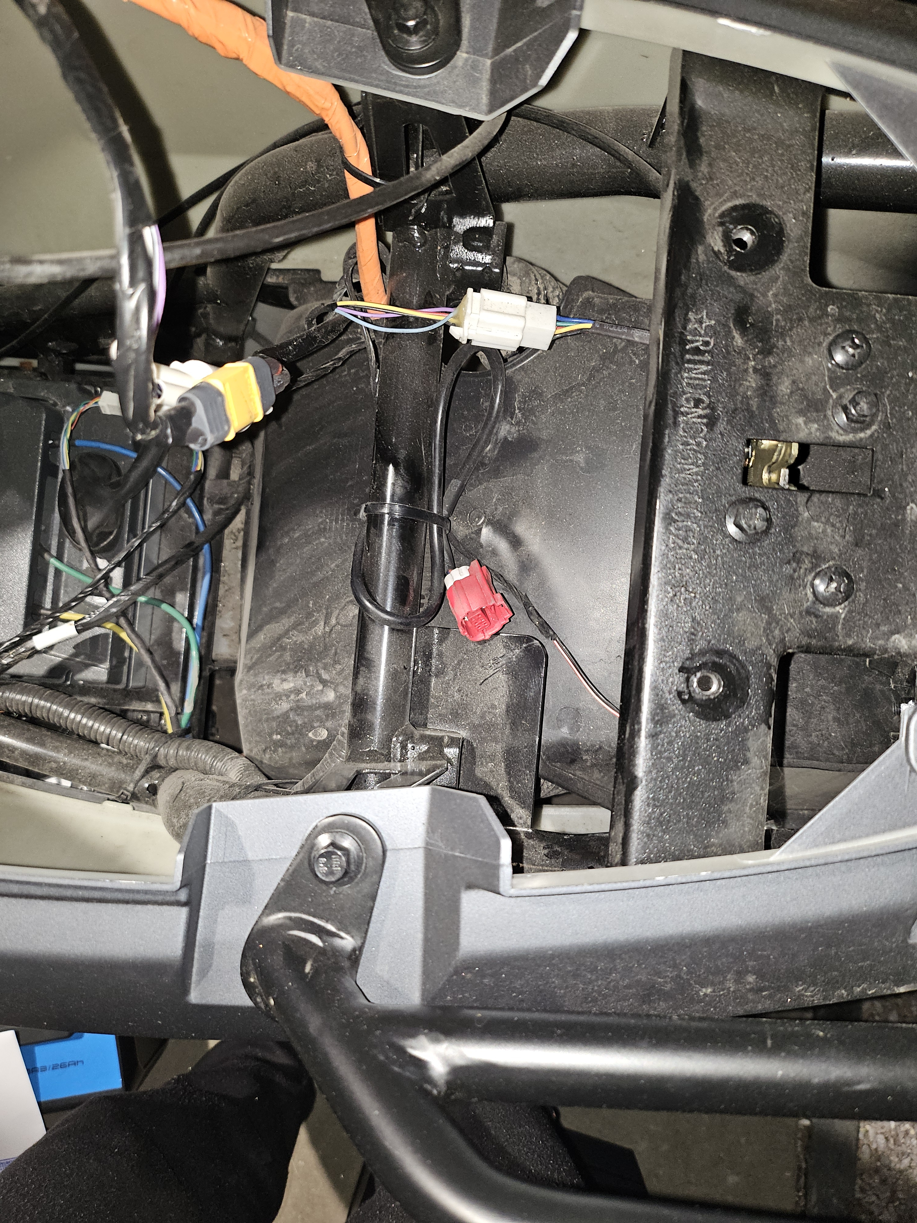 Beim Öffnen des Rollers ist mir außerdem ein roter Stecker vorne und hinten aufgefallen, die nicht angeschlossen sind. Ich bin mir nicht sicher, ob das normal ist oder ob das vielleicht mit dem Fehler zusammenhängt.